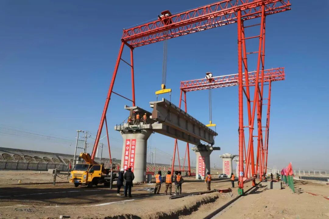 该项目位于宁夏回族自治区石嘴山市和内蒙古自治区乌海市境内,全长13.192公里。主要工程内容包括2座桥梁(总长9.038公里)、4.08公里路基及2座车站。全线需架设简支T梁430片,其中单片最大重量达142.9吨。