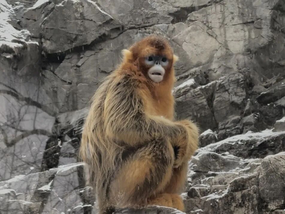 ▲北京动物园川金丝猴雪中嬉戏。北京动物园供图