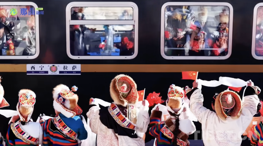 图为首批旅客在雁石坪乘降所乘车远行 图源:那曲融媒