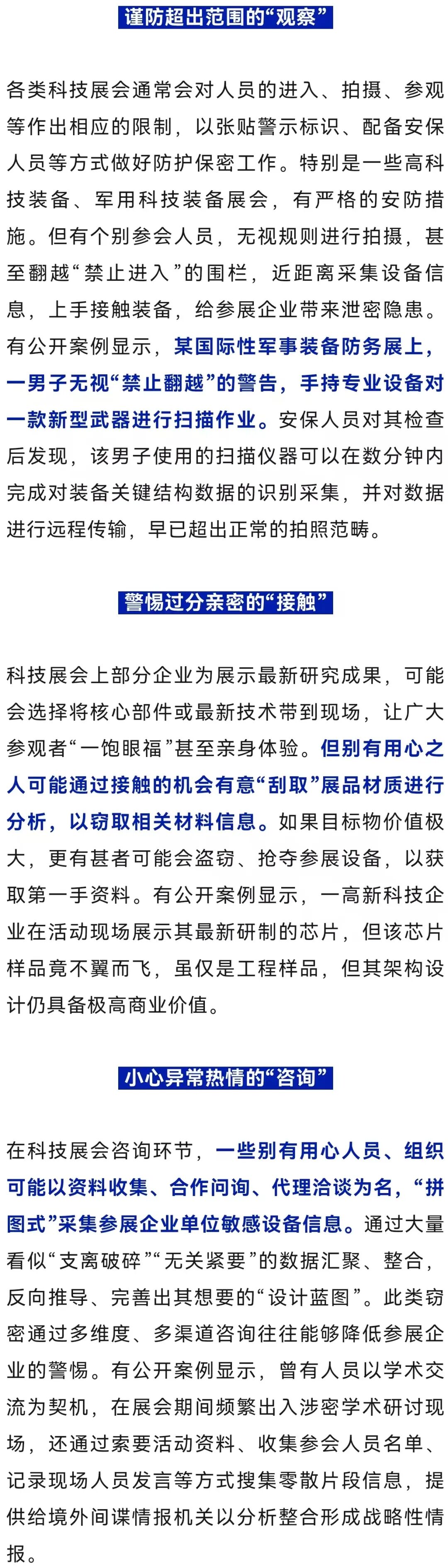 ——管好人:对表现出超常兴趣、反复追问技术细节、试图近距离触碰非展示设备的“观众”,可主动介入,礼貌引导。对于以“学术研究”为名索要内部资料的,应提高警惕,坚持履行审批程序,不提供超出保密范围的信息。