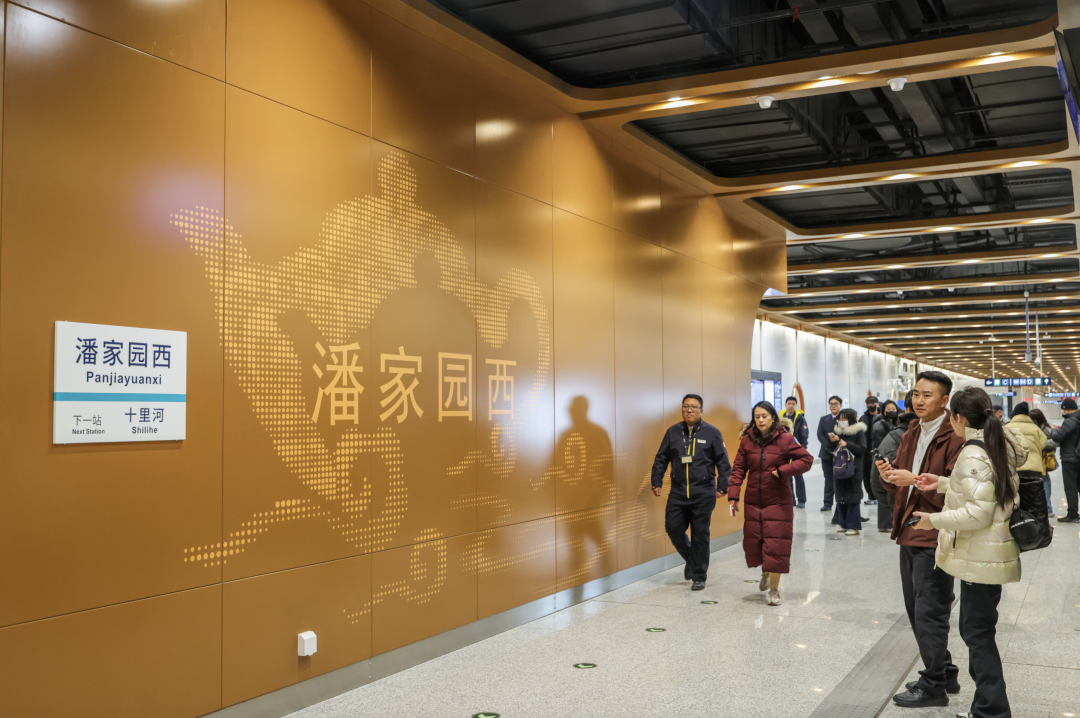 新站颜值高、有看点。永安里站装修采用新中式风格,以米色为主色调,衬以褐色线条与顶部藻井造型,展现中式空间之美。站内布置“东方之韵”主题壁画,琉璃瓦片、古建筑剪影上墙,展现古都文化底蕴与都市活力。