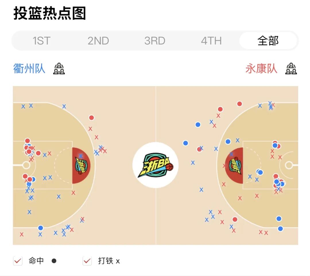 永康队则凭借3分反击上篮,将比分改写为34:14。衢州队进攻效率较低,命中率下滑,整节仅得5分。