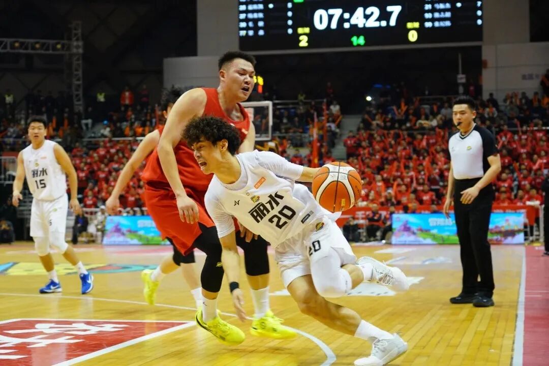 上半场结束,丽水队55:47暂时领先。