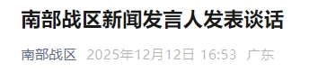 南部战区新闻发言人田军里空军大校表示,近日,菲律宾多架小型机未经中国政府批准,非法侵入中国黄岩岛领空。中国人民解放军南部战区组织海空兵力,依法依规跟踪监视、强力警告、坚决驱离。黄岩岛是中国固有领土。我们正告菲方立即停止侵权挑衅。战区部队时刻保持高度戒备,坚决捍卫国家领土主权安全和南海地区和平稳定。