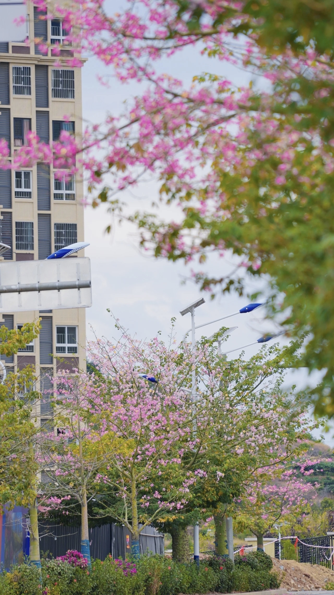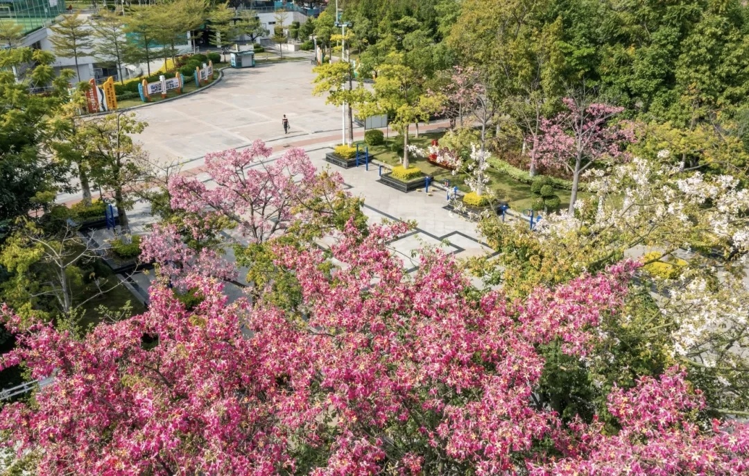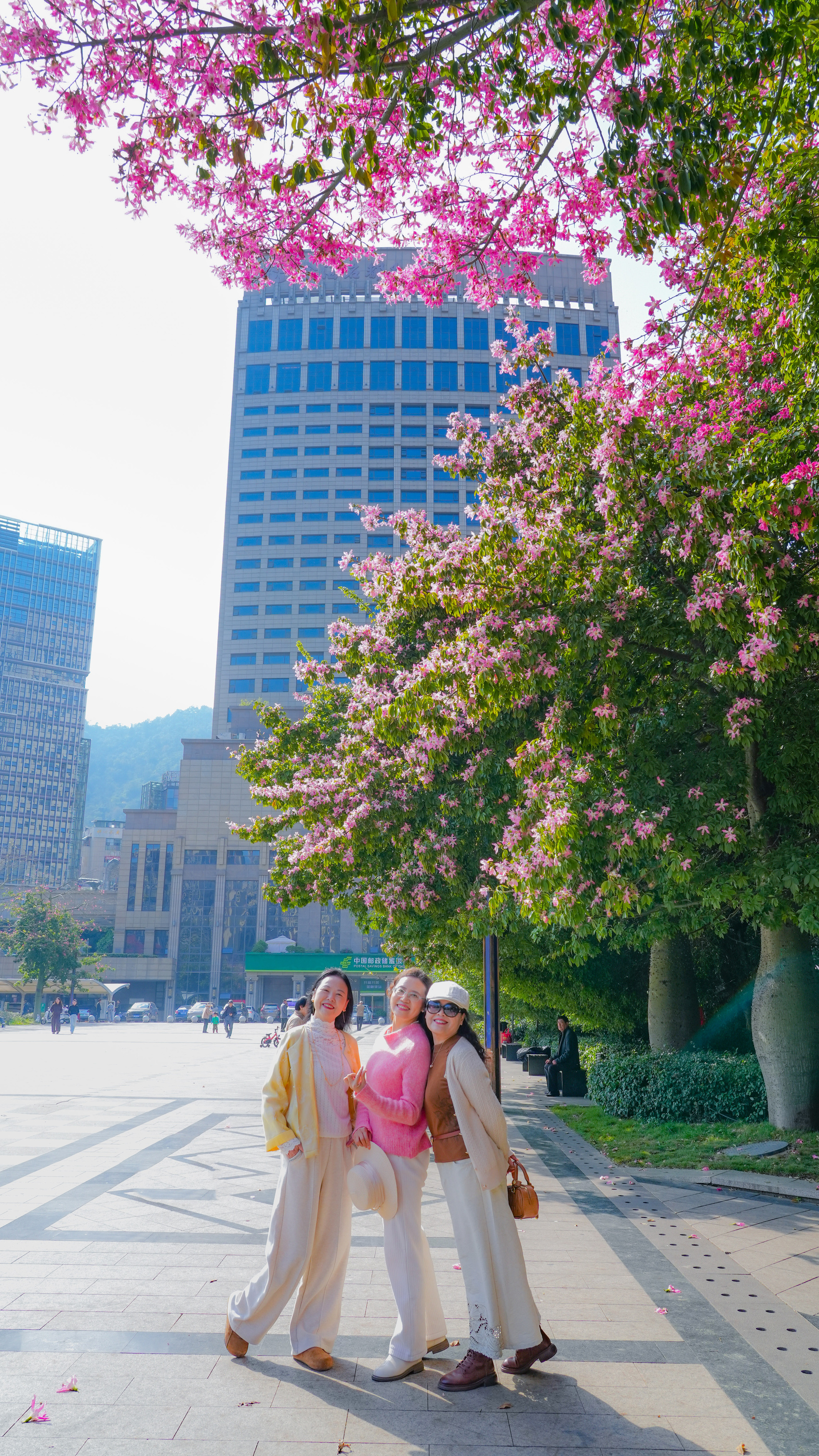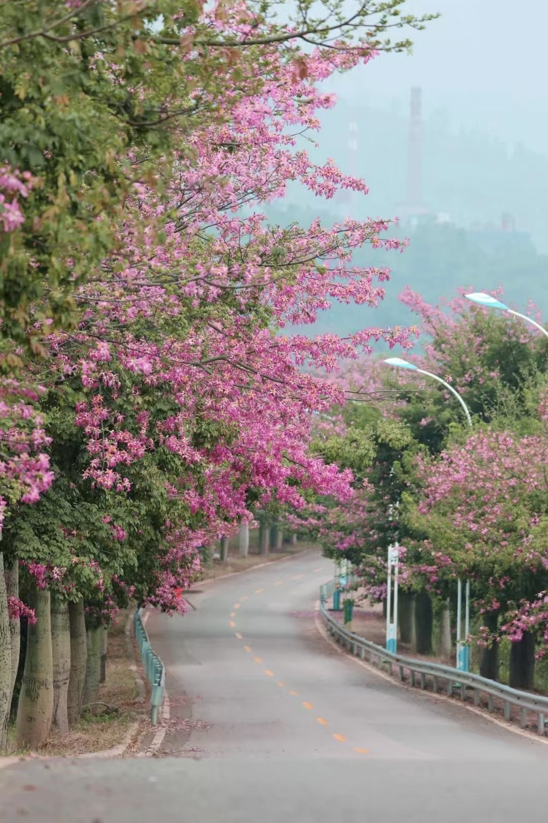 📍 仁和区上城广场及周边花开如幕,抬头便是粉色天空。这里网红机位密集,能轻松拍出“花海淹没城市”的震撼感。