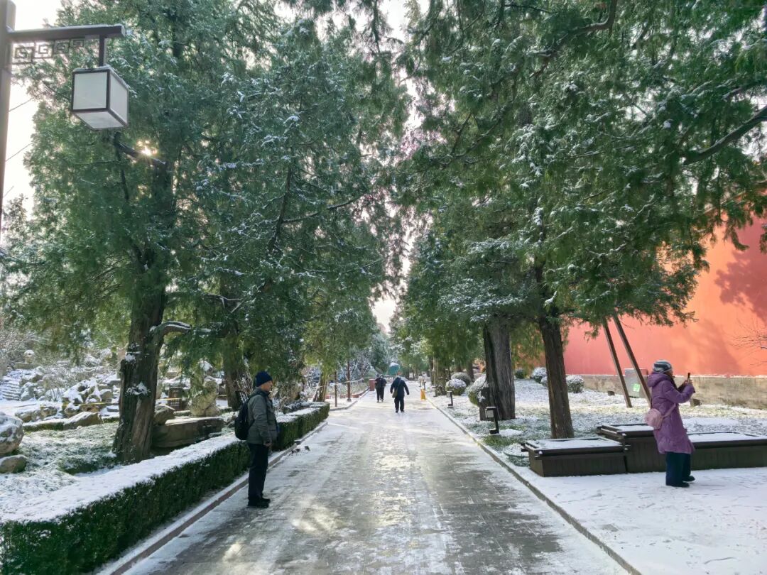 天坛公园祈年殿、颐和园石舫、北海公园白塔等景观,都在白雪映衬下呈现别样风姿。