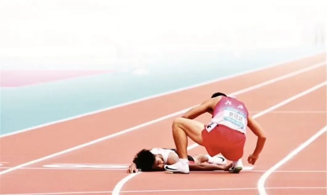 12月10日,全国第十二届残运会暨第九届特奥会广州赛区田径比赛中,云南选手陶小罗在终点处摔倒,获得亚军的广西选手磨冠达转身将他扶起,这被定格的温暖一幕获得无数网友点赞。