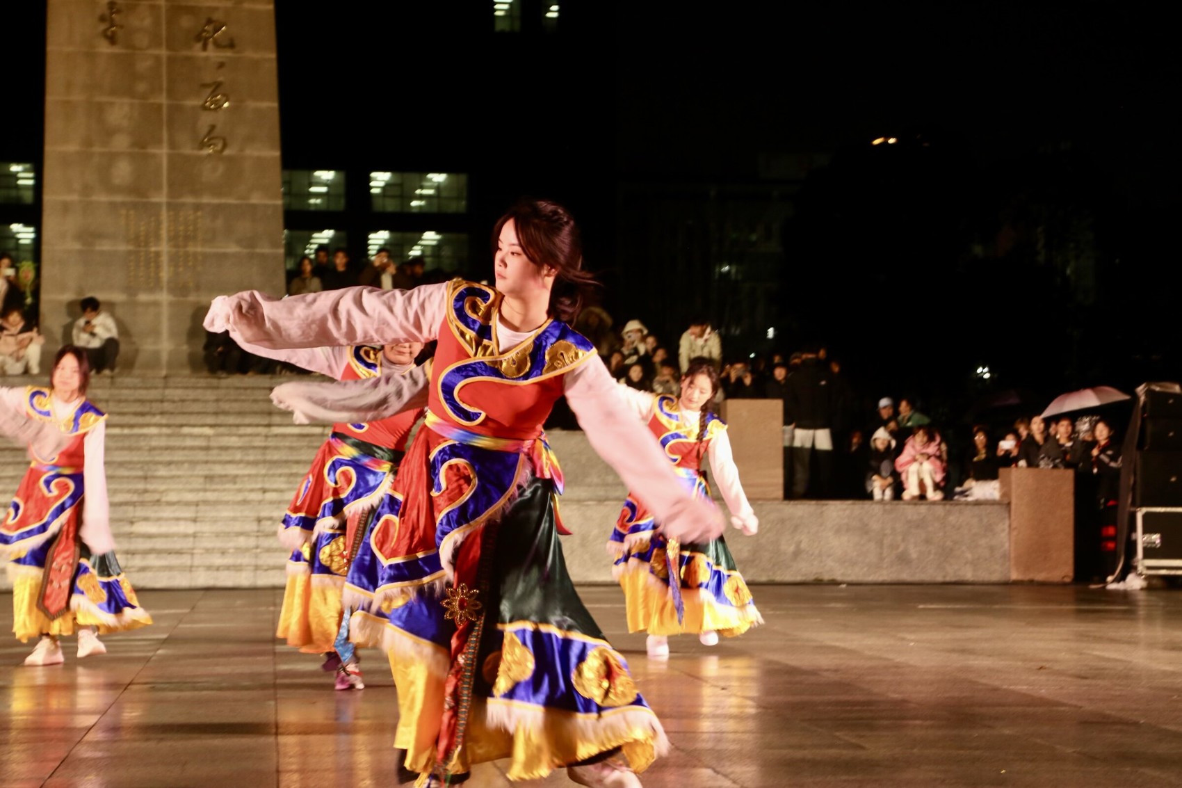 舞龙、舞狮、民族歌舞齐上阵!12月12日晚,在广安职业技术学院小平广场上,一场精彩纷呈的民族舞会上演。这是该学院以“石榴花开耀广职 籽籽同心爱中华”为主题举行的第十三届民族文化节的活动之一。篝火点燃,各民族同学一起载歌载舞,在欢声笑语中传承民族文化。