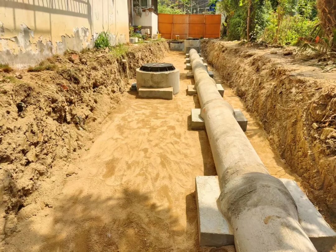 瑶海区中心城区城市更新基础设施补短板工程,小区雨污水管道同槽施工。