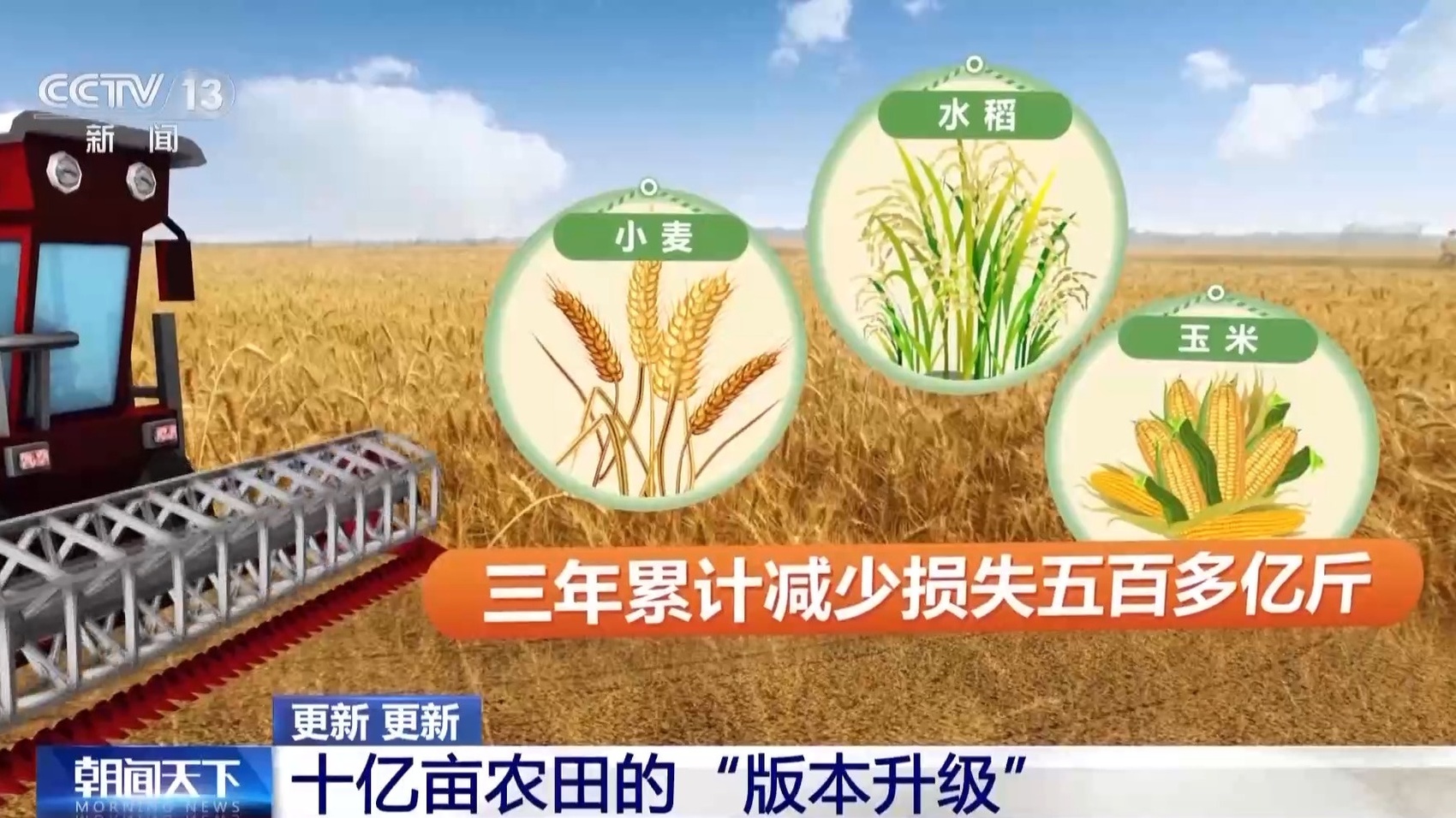 截至目前,全国已经建成超过10亿亩高标准农田。也就是说,全国一半以上的耕地都已经做到干旱能浇水、暴雨能排水。病虫害防住了,每年能保住两千八百多亿斤粮。小麦、水稻、玉米三大主粮三年累计减少损失五百多亿斤。社会化服务组织也让近一半小农户稳住了产量,还提高了收入。
