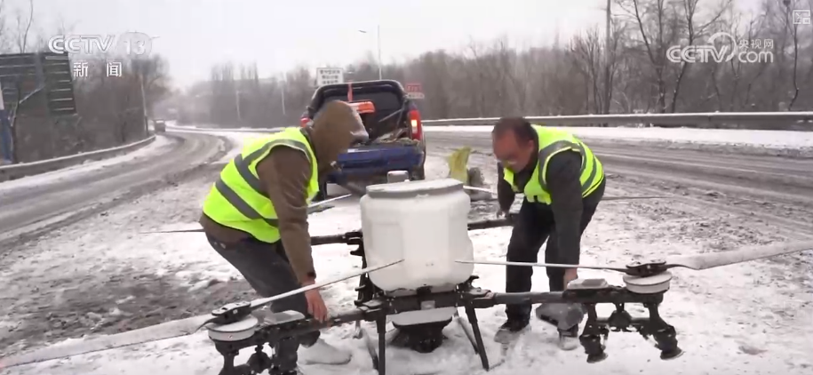 铁路方面,为应对降雪天气,当地铁路部门已启动应急预案,根据雪情及时开启道岔融雪装置,全力保障高铁线路安全畅通。 降雪致交通受阻 无人机大型机械撒盐除雪