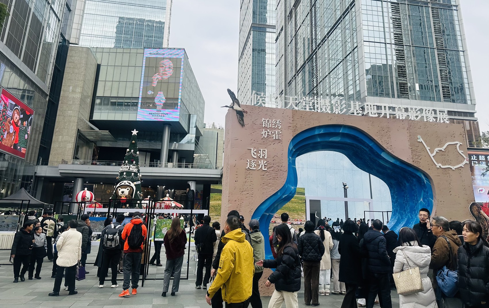 黑颈鹤掠过卡萨湖、赤麻鸭停歇鲜水河……12月13日,在成都春熙路商圈,一场别开生面的鸟类摄影展开展,100幅候鸟摄影图片被布置成一条走廊,吸引往来游客驻足“打卡”。