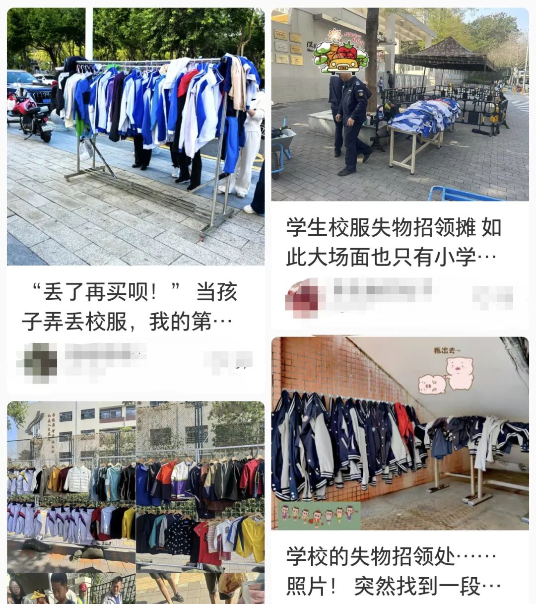 学校里散落的衣物,通常会被老师收集到失物招领处。社交平台上,不少家长晒出的失物招领处堪比“服装店”。