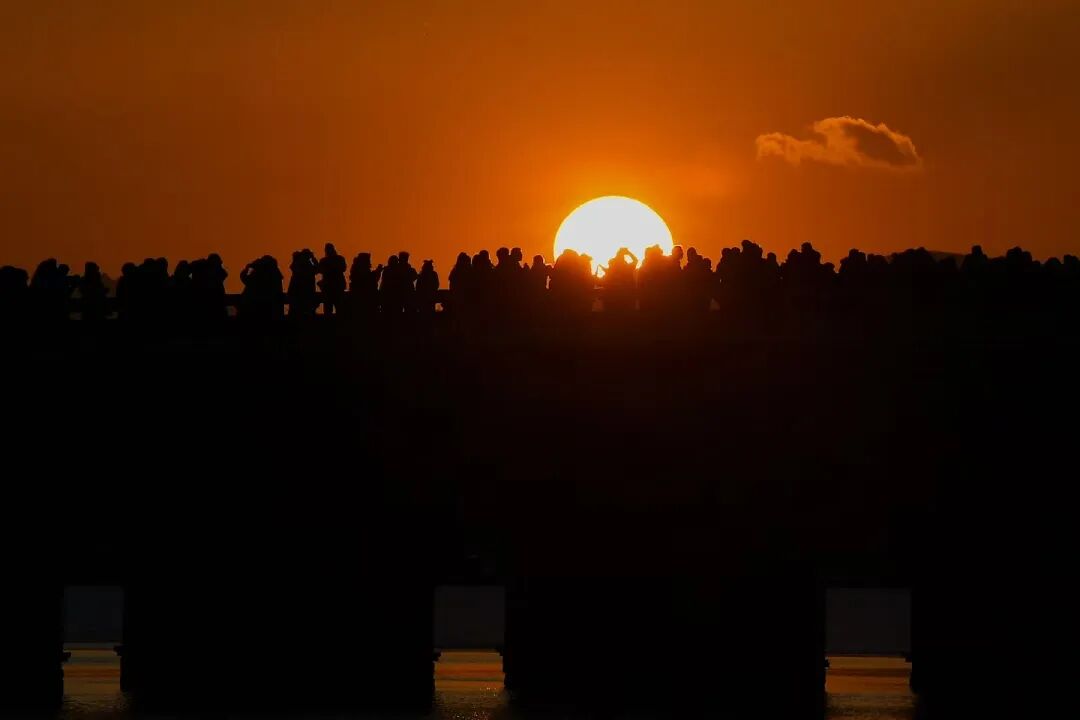 余晖为桥洞镀上金边