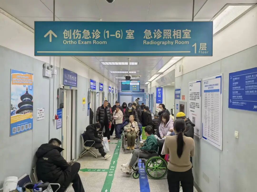 ▲北京积水潭医院急诊,患者在诊室外候诊。北京积水潭医院