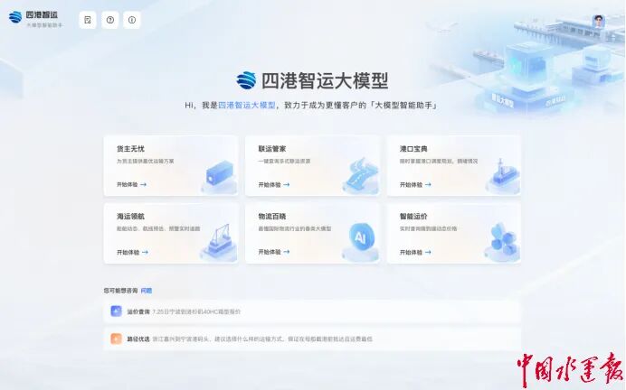 针对物流行业存在的数据孤岛、响应迟缓、协同效率低等痛点,“四港智运”大模型推出货主无忧、智能运价、海运领航、联运管家、港口宝典、物流百晓等六大模块,分别支持智能运输方案生成、动态报价、船舶追踪预警、多式联运调度、集卡路径优化及行业智能问答等功能。