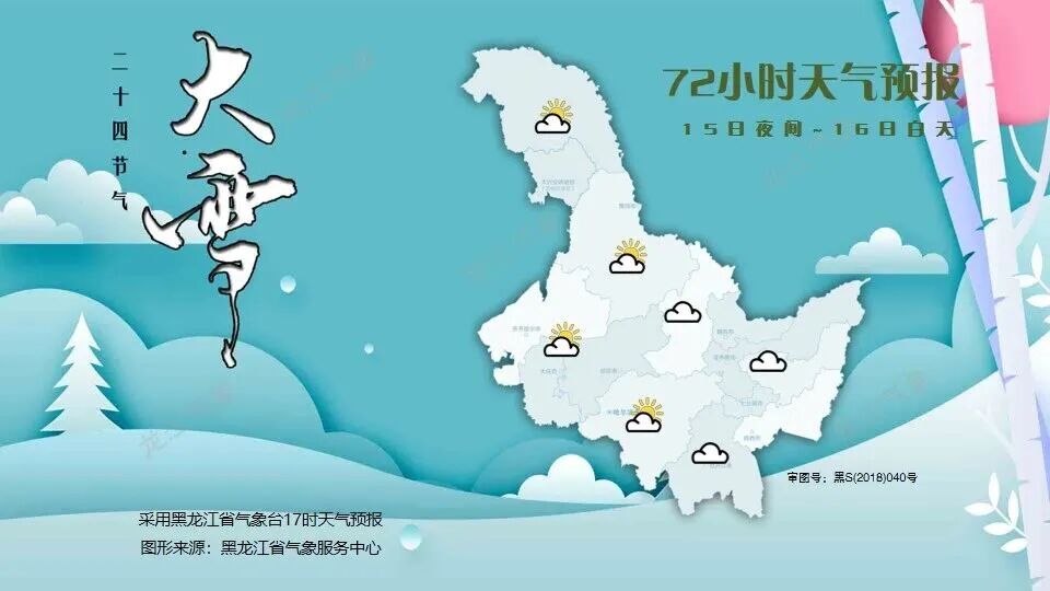 14日夜间到15日白天:大兴安岭北部、黑河、伊春北部多云有阵雪,其他地区晴有时多云。