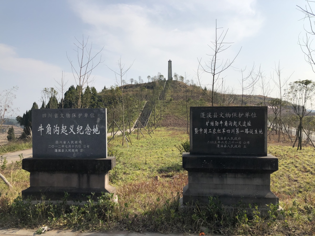 1990年4月,徐向前元帅为遗址题写“旷继勋牛角沟起义纪念碑”。2019年,为纪念蓬溪起义90周年,蓬溪县委、县政府在遗址处重建了徐向前元帅题写的“旷继勋牛角沟起义纪念碑”,竖起了“四川红军第一村”标志牌。目前,遗址已经成为人们缅怀革命先烈丰功伟绩、开展党性教育和学习乡村振兴经验的重要基地。