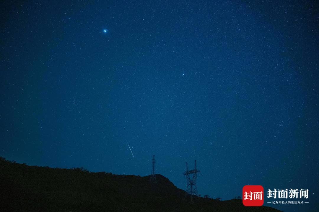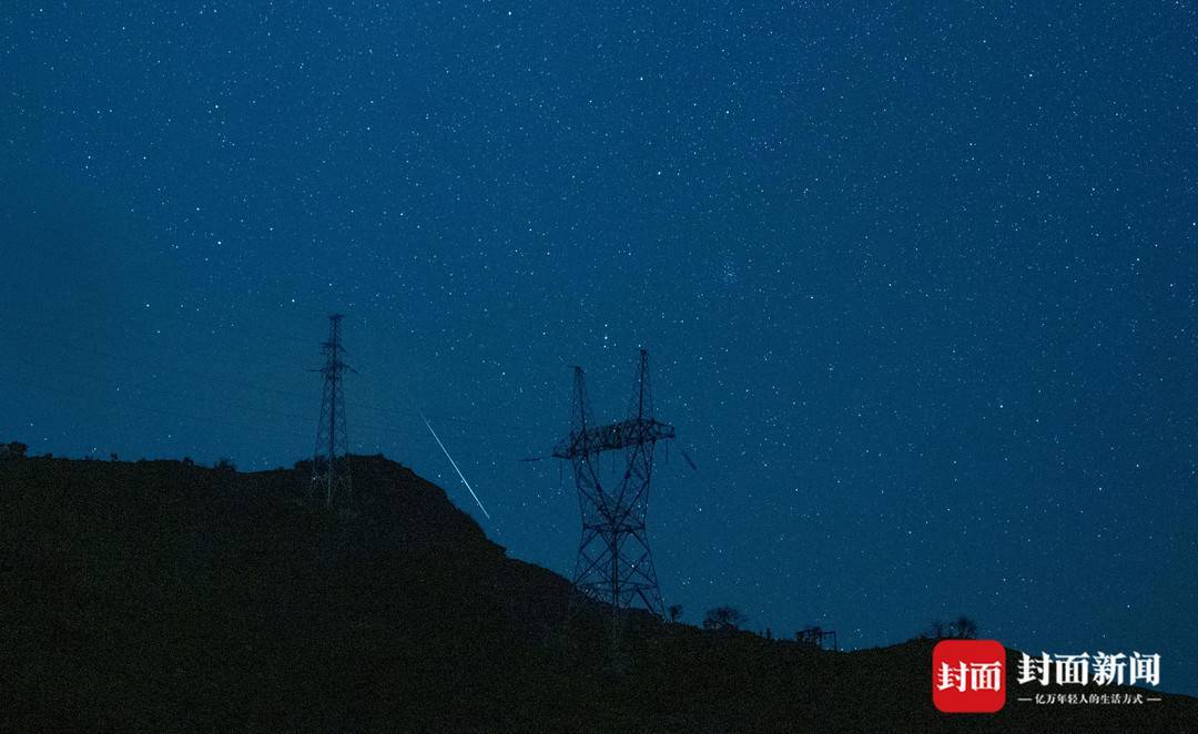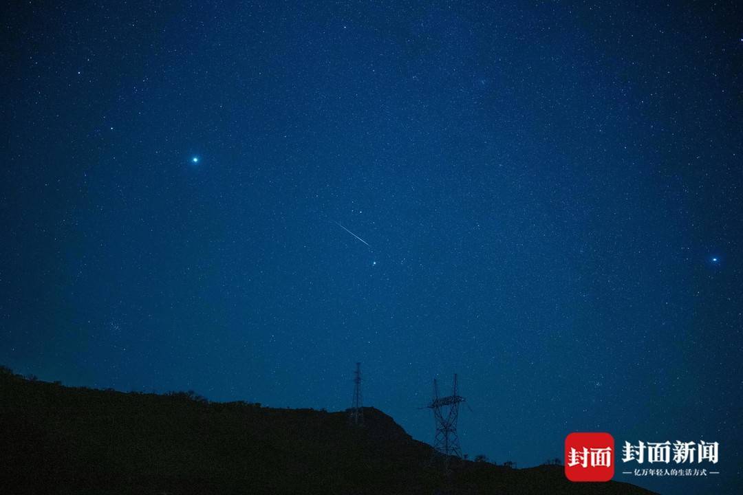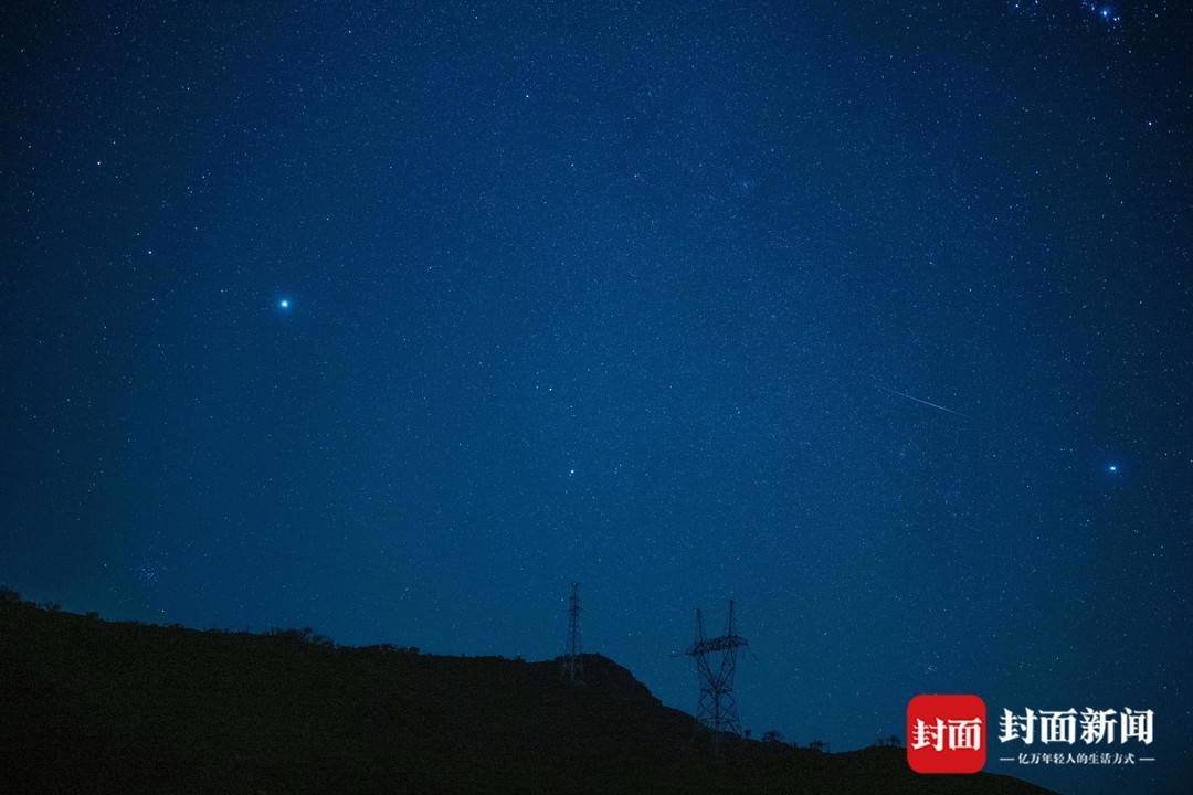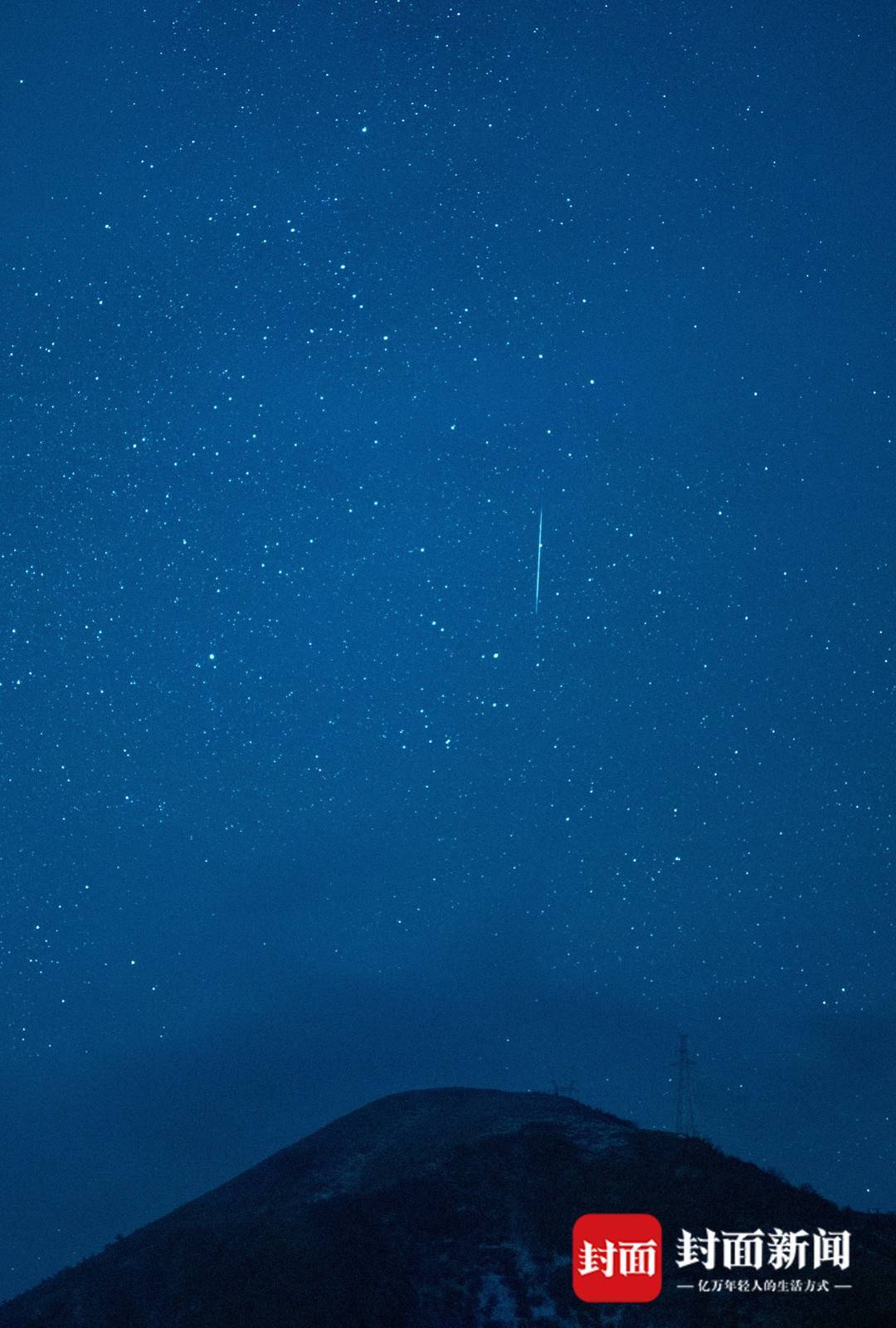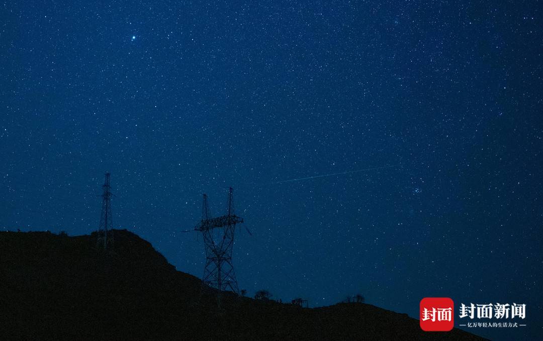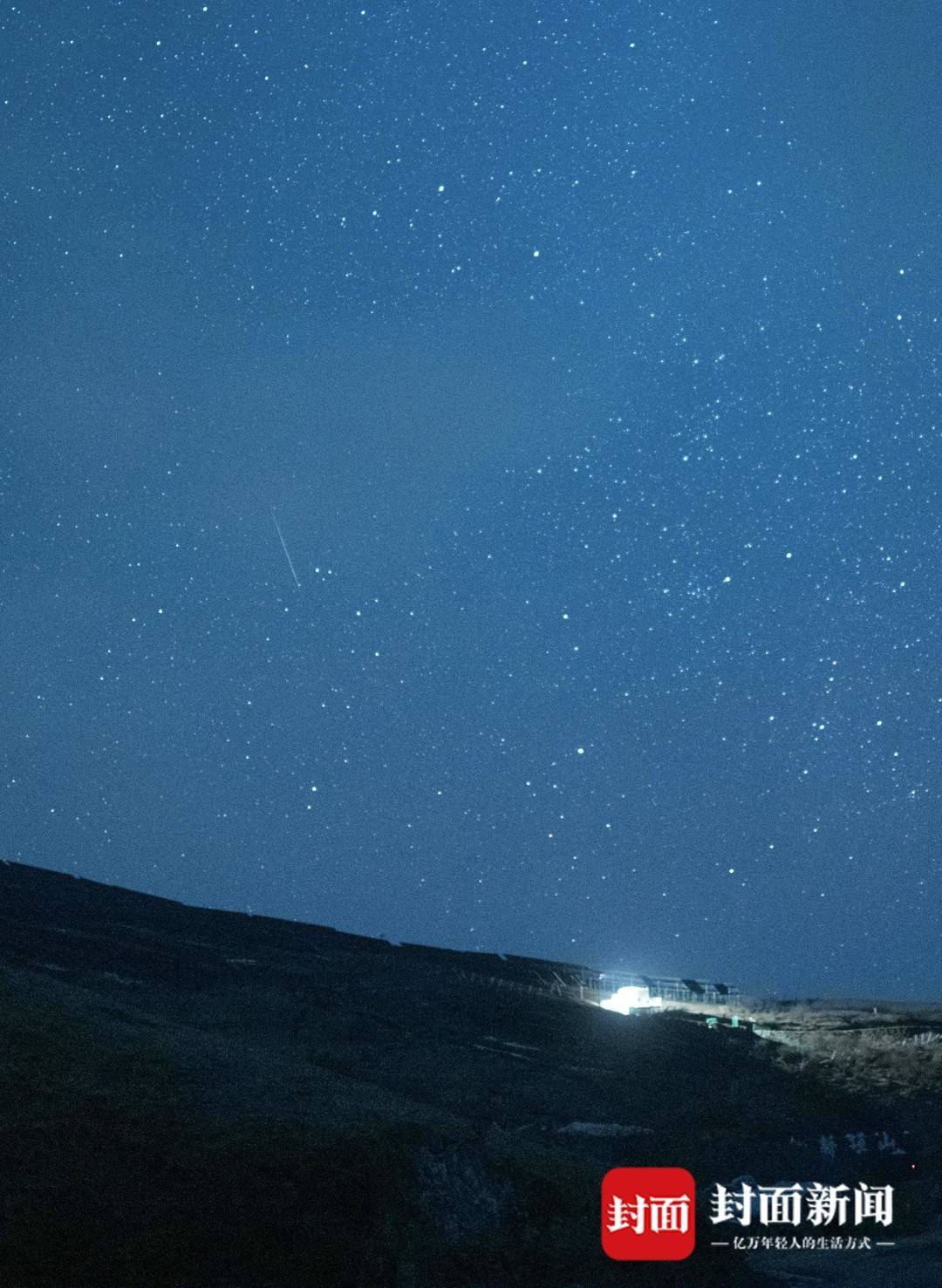 2025年12月13日晚,四川省雅安市汉源县轿顶山,一颗流星划过天空。