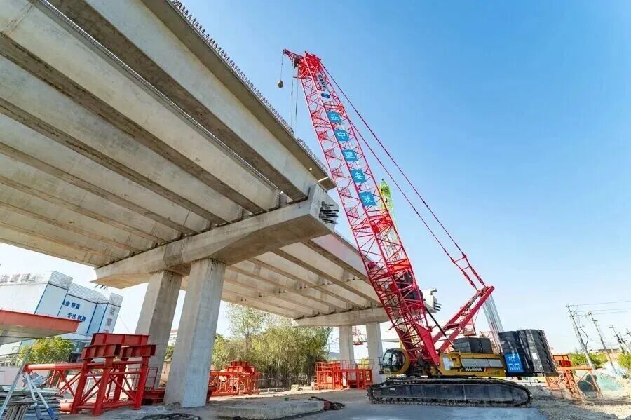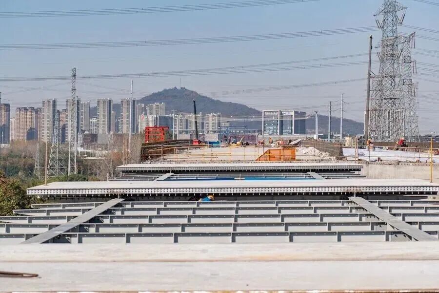 施工单位中建安装南京公司现场负责人透露,最后完成吊装的第三联钢梁可“不一般”,它是全线的科研段。这一联钢梁创新使用了新型的高性能钢混组合结构,优化的材料配比和预制工艺,使它具备了强度高、轻量化、耐久性强的显著特点。“用它制作的预制构件才能实现薄壁化设计,降低了桥梁自重,提升了抗裂性能。”现场负责人对记者说。