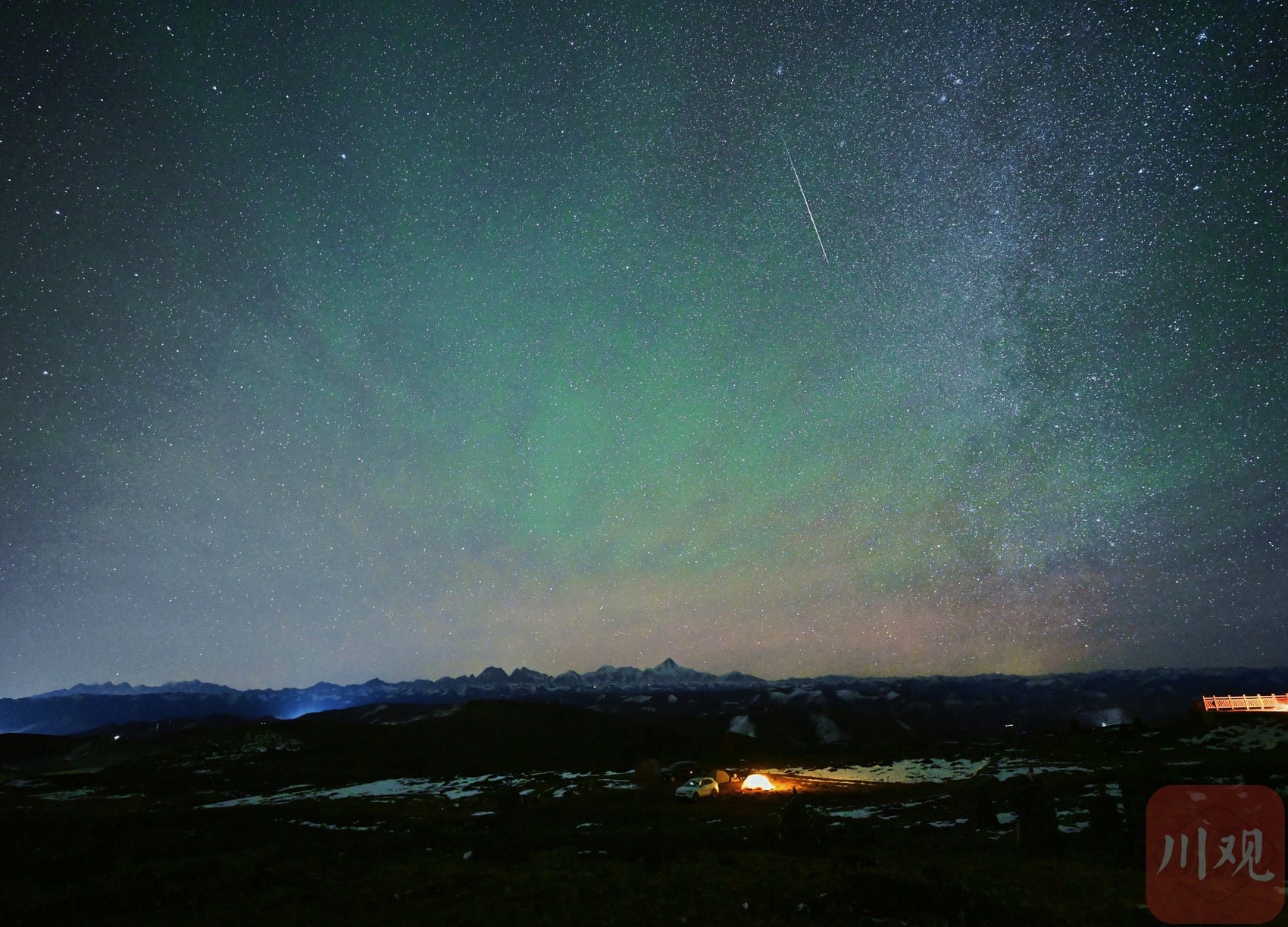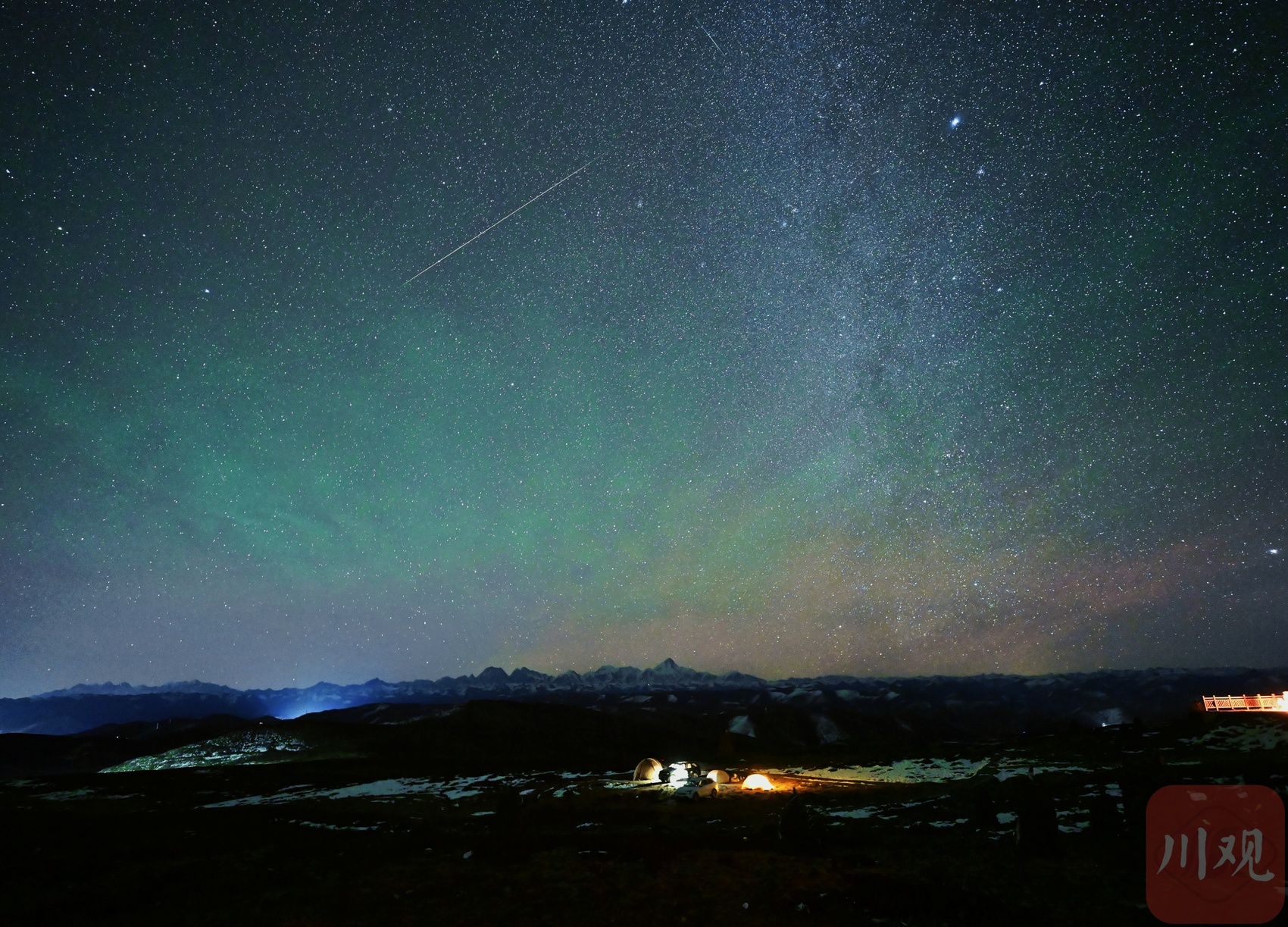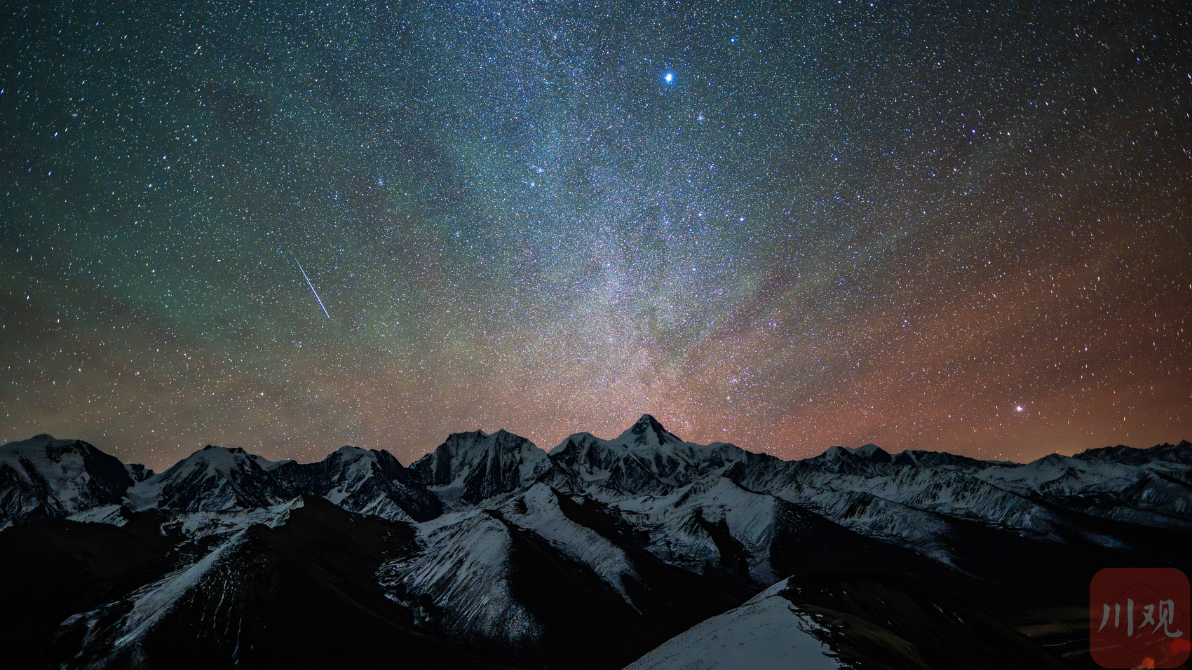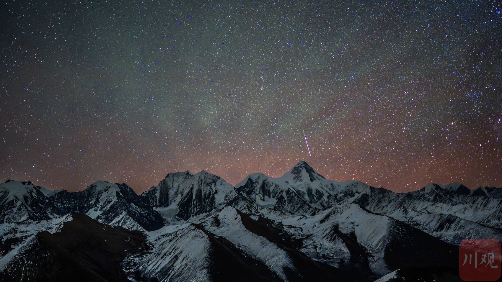 2025年12月12日晚至14日凌晨,四川甘孜康定市甲根坝、新都桥区域的夜空上演震撼天象。海拔超4000米的雅哈垭口、子梅垭口等地,一道道流星疾驰划破深邃夜幕,与巍峨耸立的贡嘎雪山、璀璨闪耀的银河交相辉映,织就出一幅壮丽磅礴的自然画卷,吸引大批摄影爱好者奔赴打卡、定格瞬间。