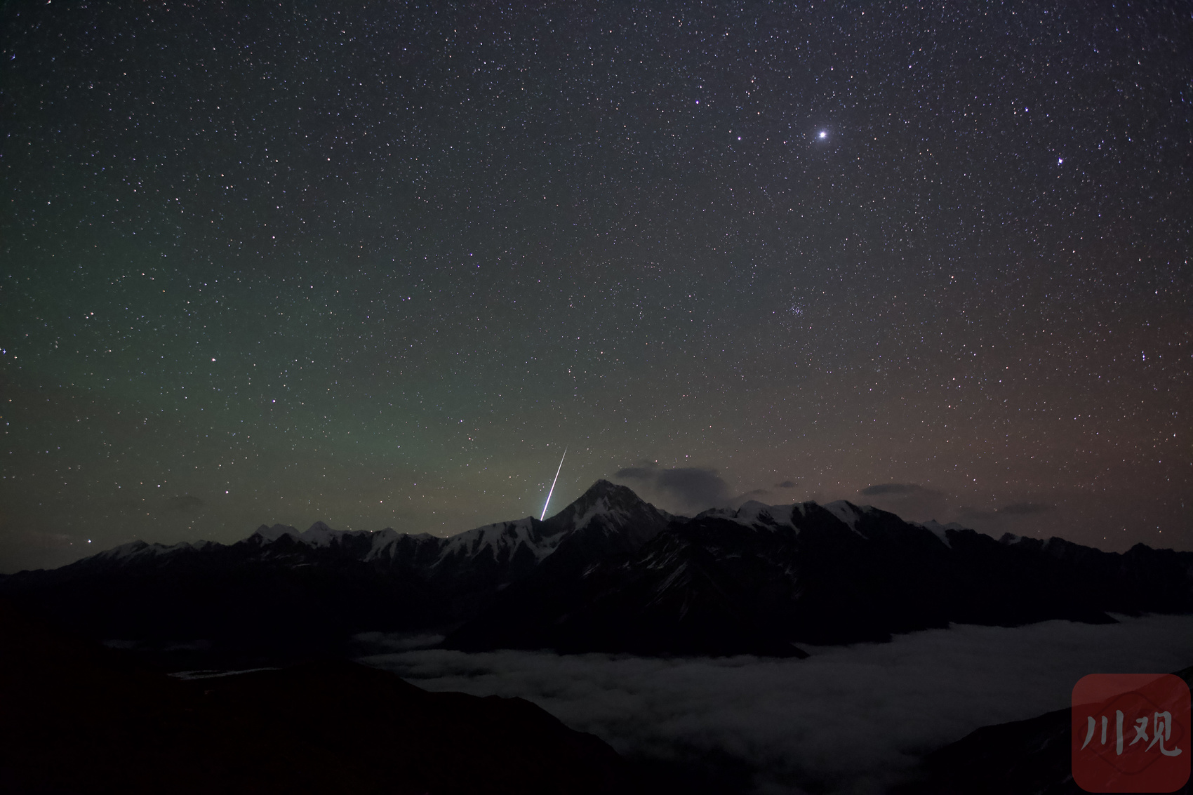 2025年12月12日晚,在甘孜州康定市贡嘎乡子梅垭口,流星划过星空。C视觉签约摄影师 王军摄