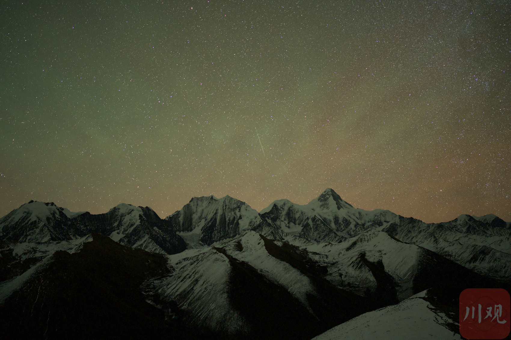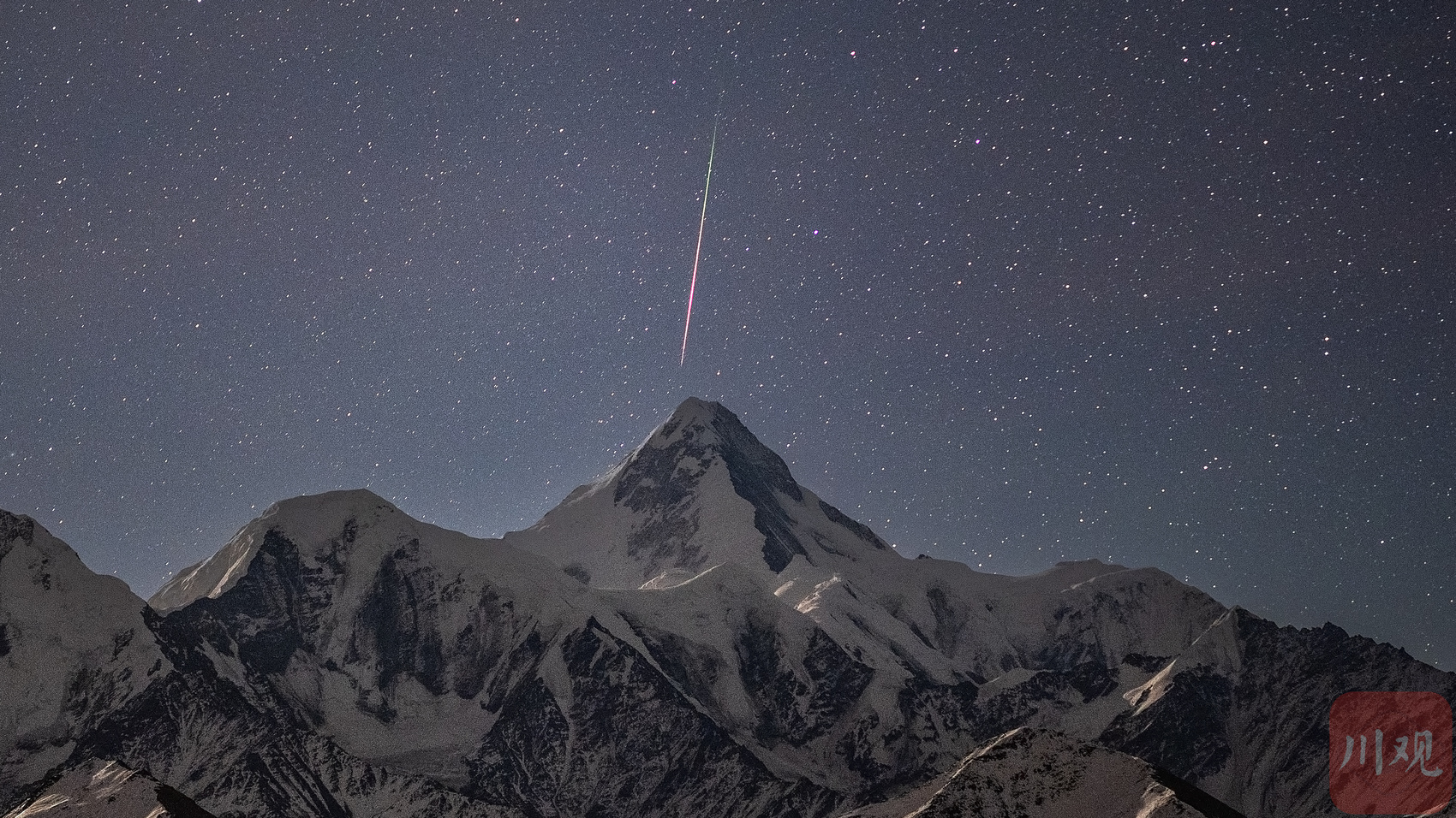 2025年12月14日凌晨,在康定甲根坝雅哈垭口,流星划破天际与贡嘎雪山同框相聚。C视觉签约摄影师 田相和摄