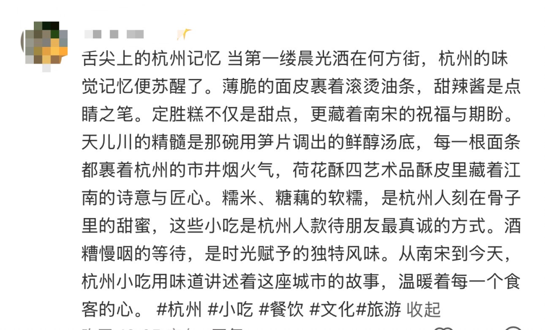 她打卡过杭州的著名街区、爬过宝石山、打卡过浙江省博物馆、甚至还逛了杭州的菜市场,说这里的海鲜比香港的还要多。