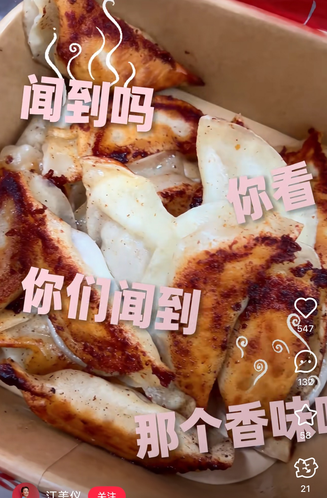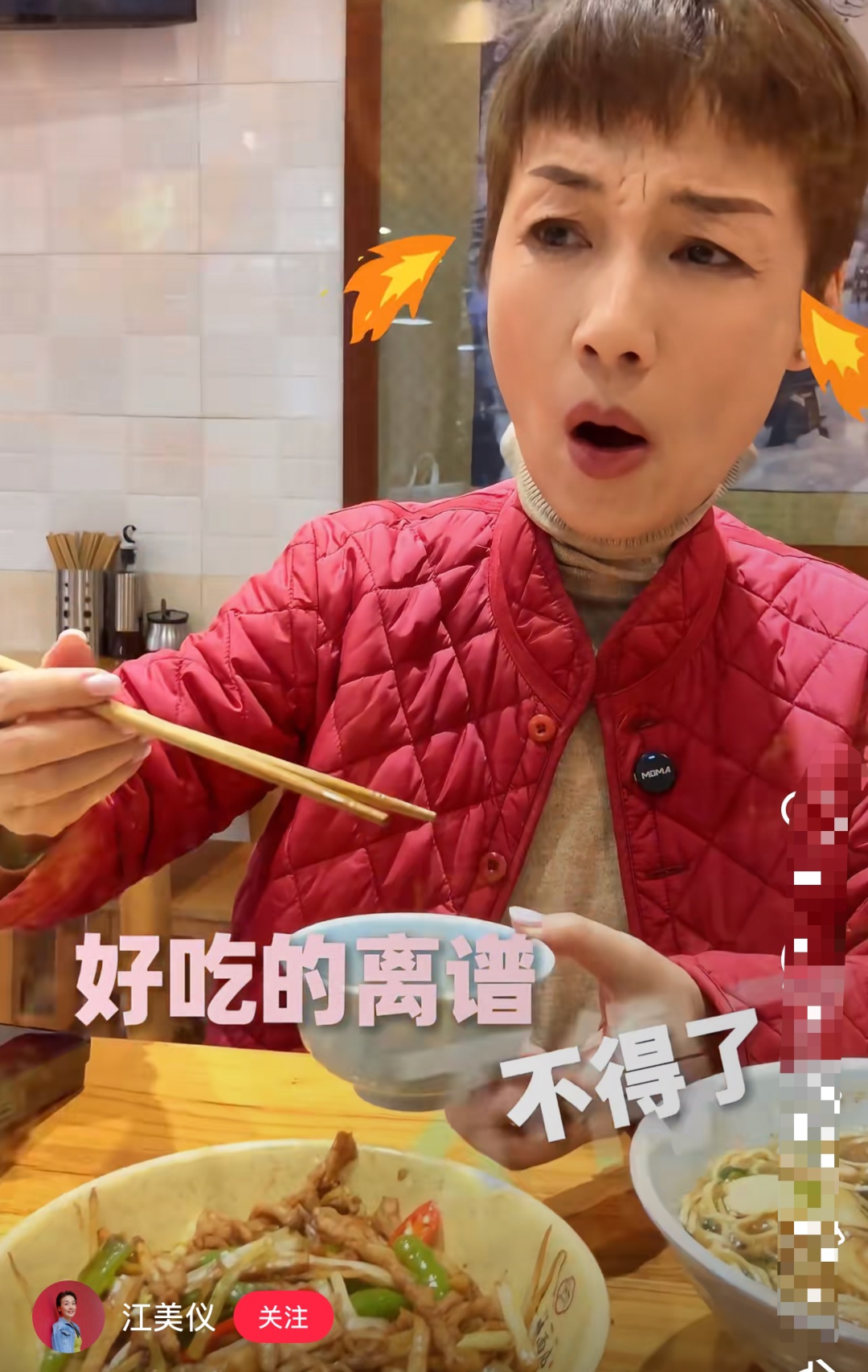 江美仪对着镜头直呼:太好吃了。