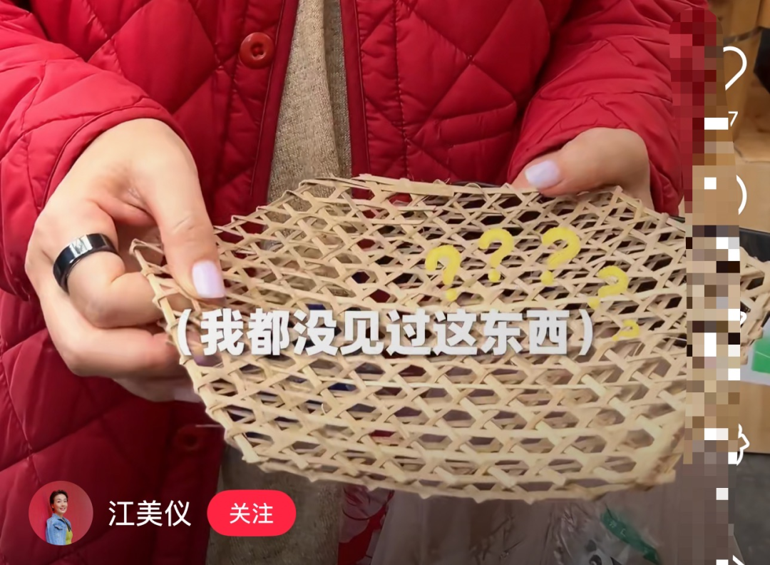 在视频里,她买了一个竹编的东西,称可以提前泡水软化它来焖食物,这样不会粘锅。