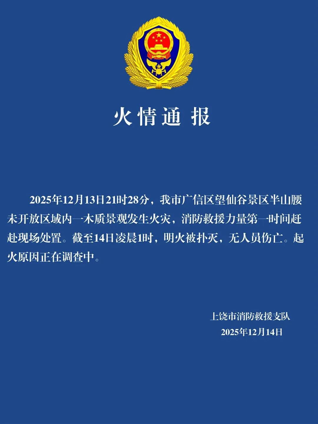 12月14日凌晨,江西省上饶市消防救援支队发布“火情通报”: