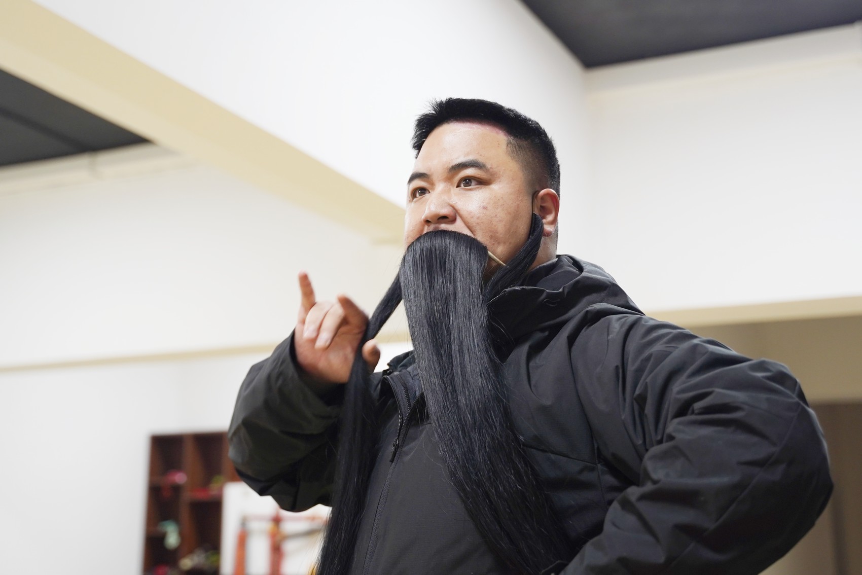 “莲花宝帐把令传,大小儿郎听详端……”当天上午10点,剧团排练厅,团长龙杨正对着镜子练习,灯光下的影子一动一静之间,房间内回响起高亢又颇具韵味的唱词。