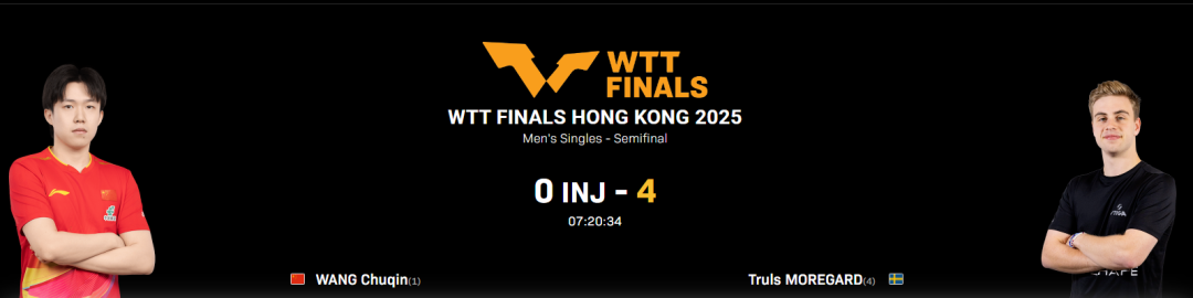 北京时间12月14日,WTT香港总决赛男单半决赛,王楚钦对阵特鲁斯·莫雷加德。赛前王楚钦宣布因伤退赛,两人登场后拥抱致意,男单决赛将在莫雷加德与张本智和之间展开。