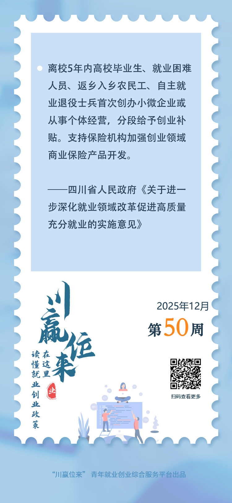 就业是民生之本,创业是就业之源。创业具有“一人创业、多人就业”的辐射效应,进一步激活创业动能,可有效实现增就业促发展。为此,四川提出从创业培训、创业服务、创业孵化、创业活动等方面,健全“全链条”创业支持体系。落实创业担保贷款政策,财政部门按规定贴息。实行担保基金市(州)统筹并建立动态补充机制,进一步扩大创业担保贷款发放规模。支持保险机构加强创业领域商业保险产品开发等。