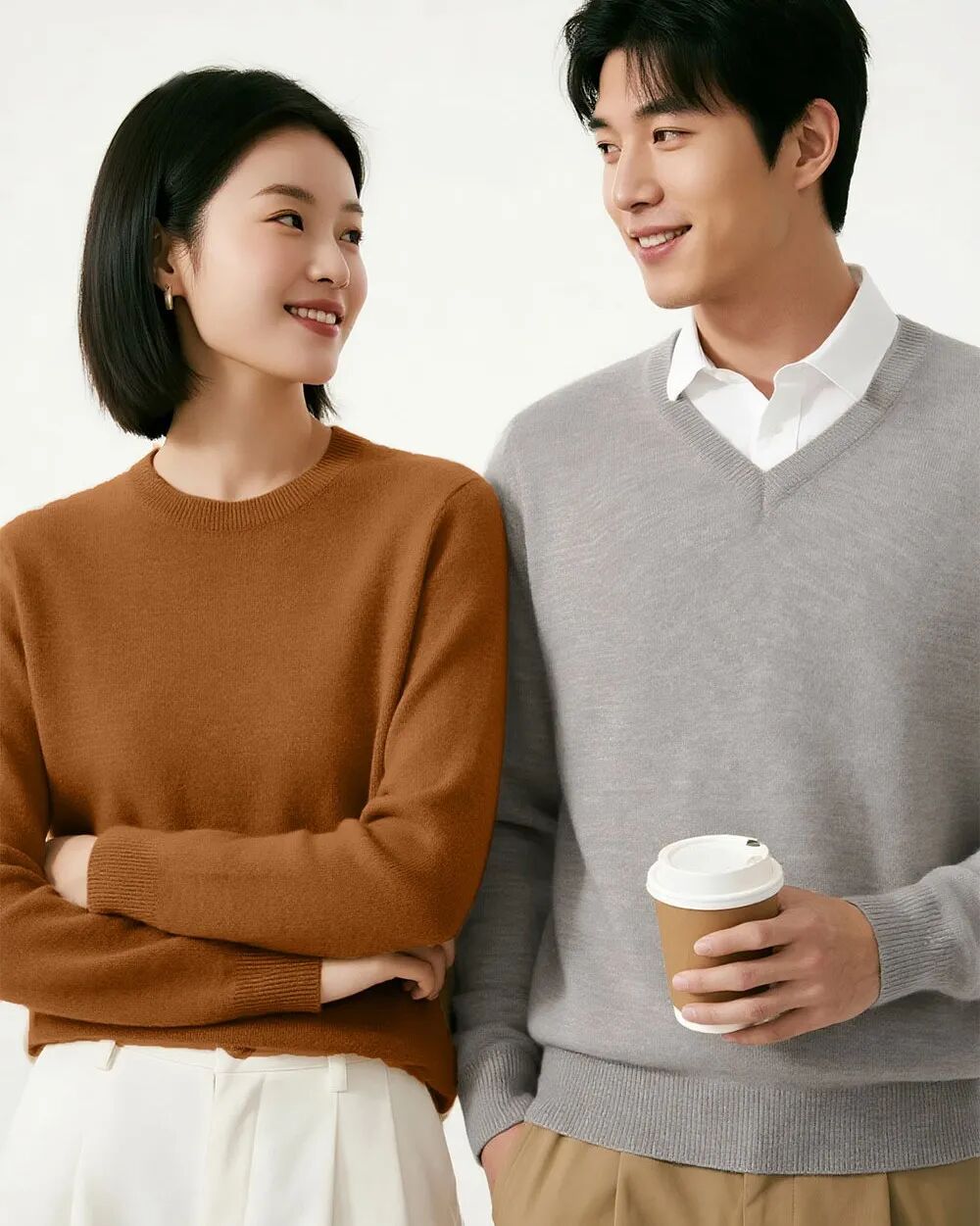 这款羊毛衫的克重为男款270克,女款220克,这个重量上身效果好,既不易显得臃肿,又能高效锁温,在轻盈与保暖之间达成了平衡。