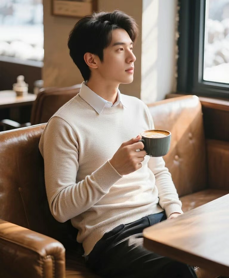 男款开衫在设计时考虑了男性体型,着重处理肩部线条,视觉上显得更挺拔。