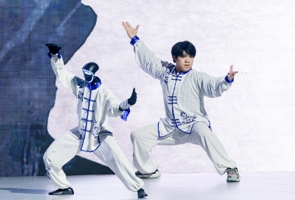身着白色太极服的宇树G1。(主办方供图)