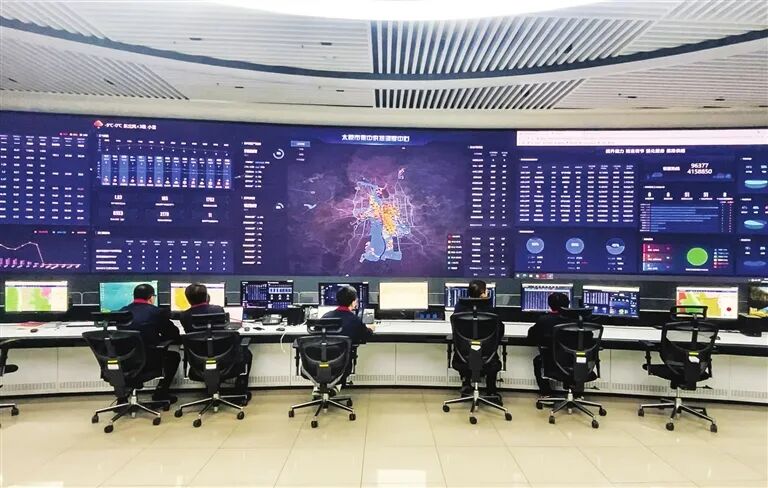 图为 12月12日,在太原市集中供热调度中心,工作人员依托智慧供热系统,根据天气情况,动态调节相关供热参数。
