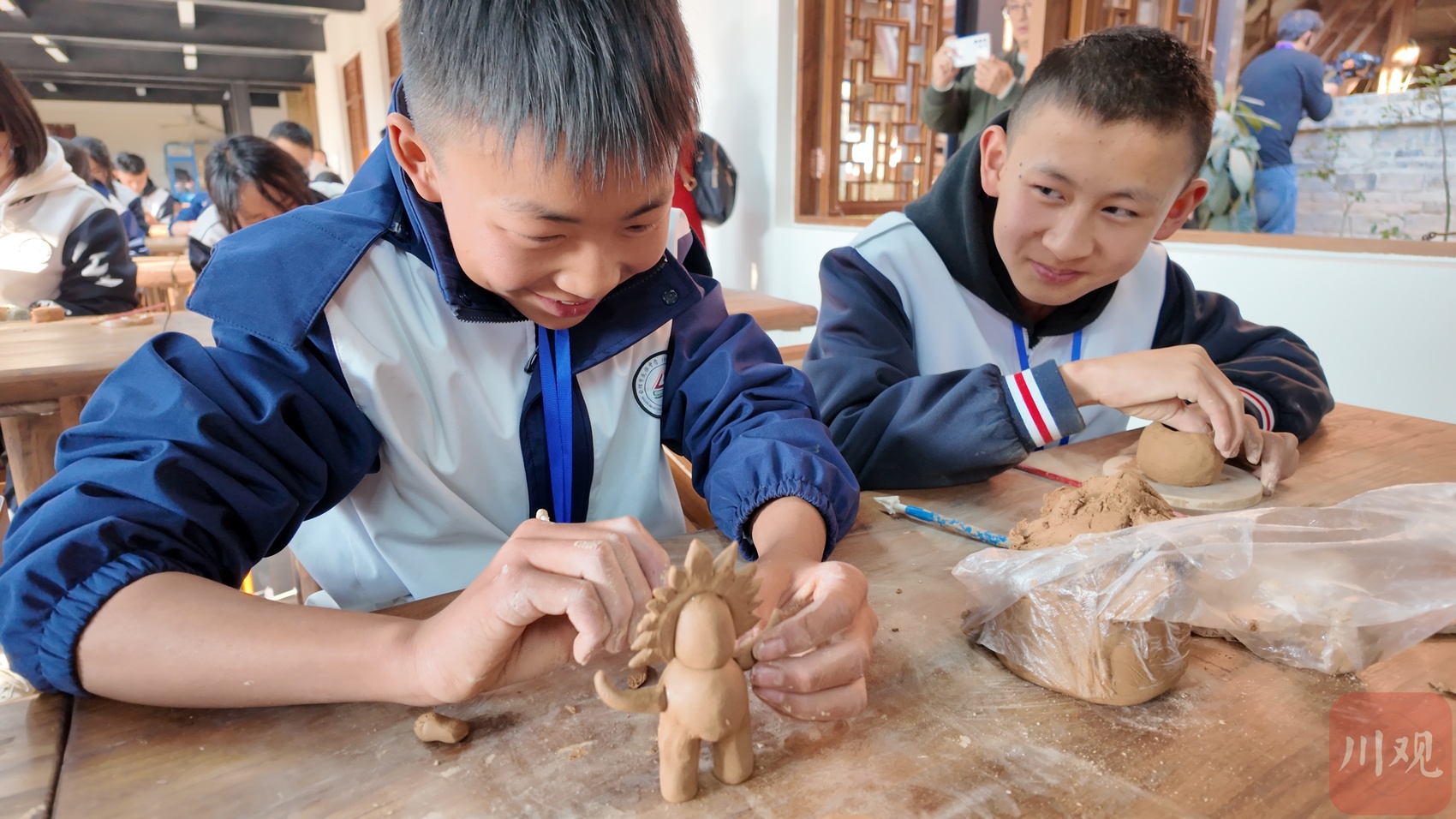 在阳光映照下,一群学生正在绿陶文化产业园中认真学习绿陶制坯技艺。水杯、玩偶、泥人……一个个活灵活现地出自同学们手中。“我在捏我喜欢的动漫里的一只小猫,来这里学习绿陶是我们的课外实践课,我们学校也有专门的绿陶工作坊,经过学习我和我的同学了解绿陶制作过程了。”会理市民族中学初二学生周应萱说。