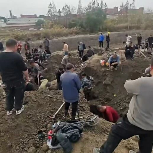 近日,关于上海市松江区车墩镇北闵路375号一处工地发现大量“银元”的消息在短视频平台上传开。从12月10日开始,多名网友发布相关视频显示,该工地上有许多人用铁锹挖掘,用“探宝仪器”探测……视频显示,有网友称,现场挖掘出了上千枚银元,被挖掘处曾经是一处老宅,银元有北洋造光绪银元、民国“袁大头”银元还有外国银币等。