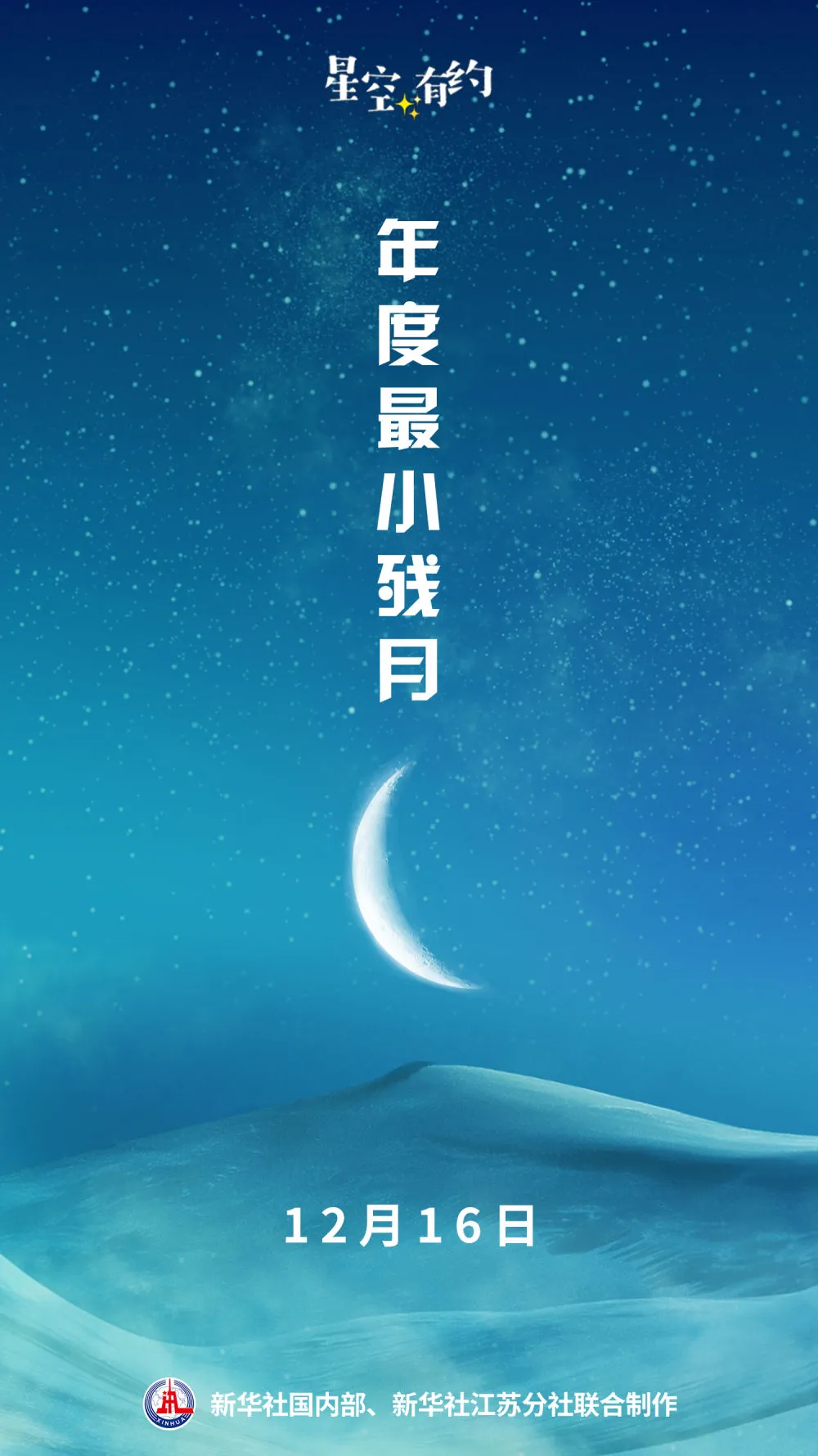 12月16日将迎来本年度最小残月,届时,月球位于轨道远地点附近,人们看到的月亮像是一弯纤细的银钩。
