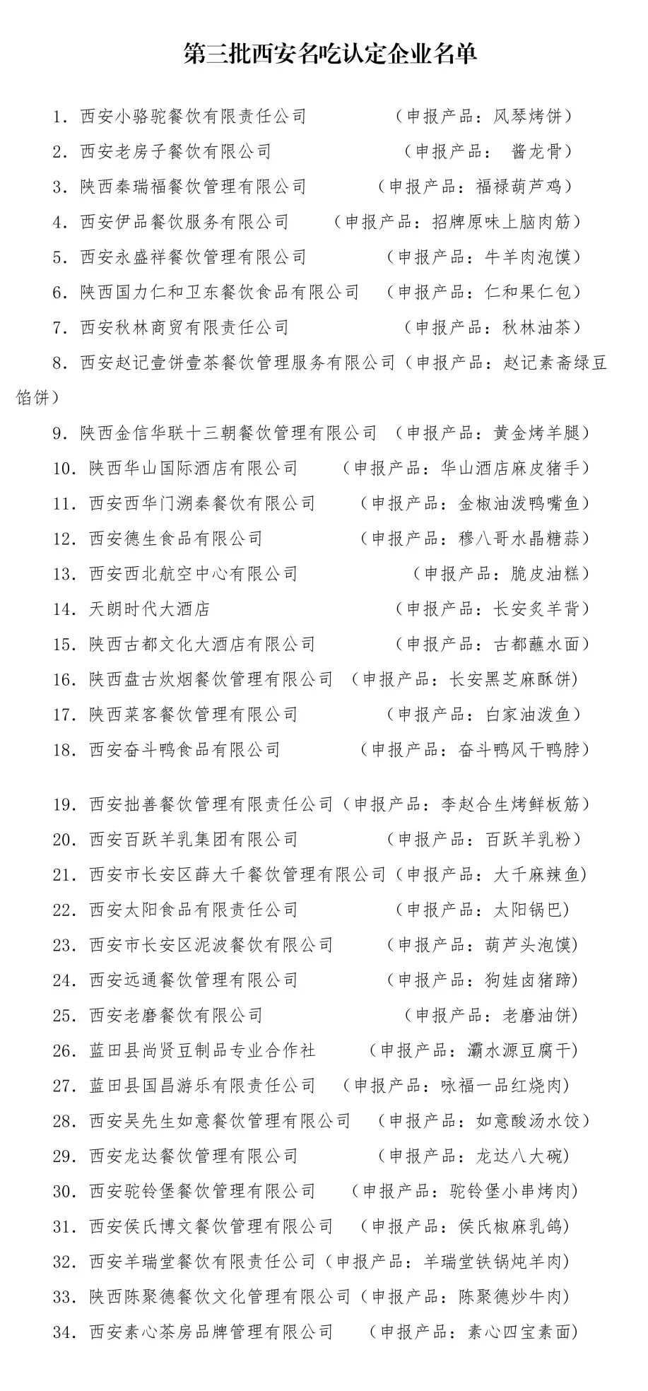 根据西安市商务局《关于开展第三批“西安老字号”和“西安名吃”推荐认定工作的通知》(市商发〔2025〕39号),按照《西安老字号认定管理办法》和《西安名吃认定管理办法》的标准条件及要求,由西安市商务局组织专家评委,对经企业自愿申报,各区、县商务主管部门初审推荐的第三批“西安老字号”和“西安名吃”申报企业进行资料审核及现场核查,西安咸宁百货有限公司等40家企业符合认定标准,认定为第三批“西安老字号”。西安小骆驼餐饮有限责任公司(申报产品:风琴烤饼)等34家企业及产品符合认定标准,认定为第三批“西安名吃”。现予以公告。