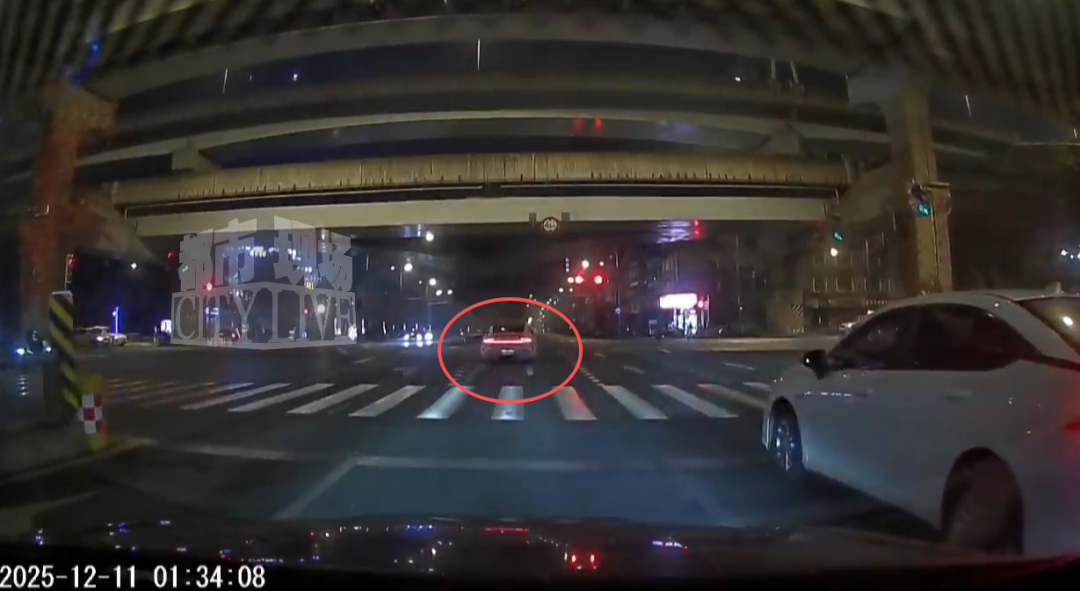 四川成都市民卿先生在网络上发布视频称:12月11日凌晨一点半左右,有辆小米汽车强行变道闯红灯,把他吓了一跳。