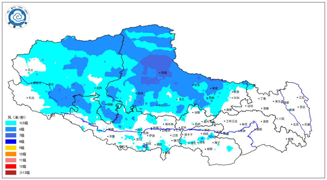 12月18日至23日,林芝、昌都和山南多云;其他地方晴天间少云。20日至23日风速较前期有所增大,那曲、阿里、日喀则西部和南部、山南西部高海拔地方有8级左右大风;雅鲁藏布江一线和昌都北部有4级左右阵风(图)。