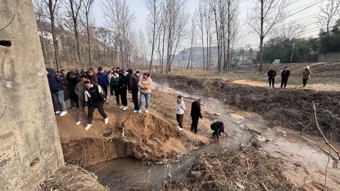 汩汩水流从地下翻涌而出,在干裂的河床上汇成水潭,氤氲的水汽在冬日里格外显眼。村民们带着瓶瓶罐罐接水留念,不少老人抚摸着温热的泉水,眼眶泛红。