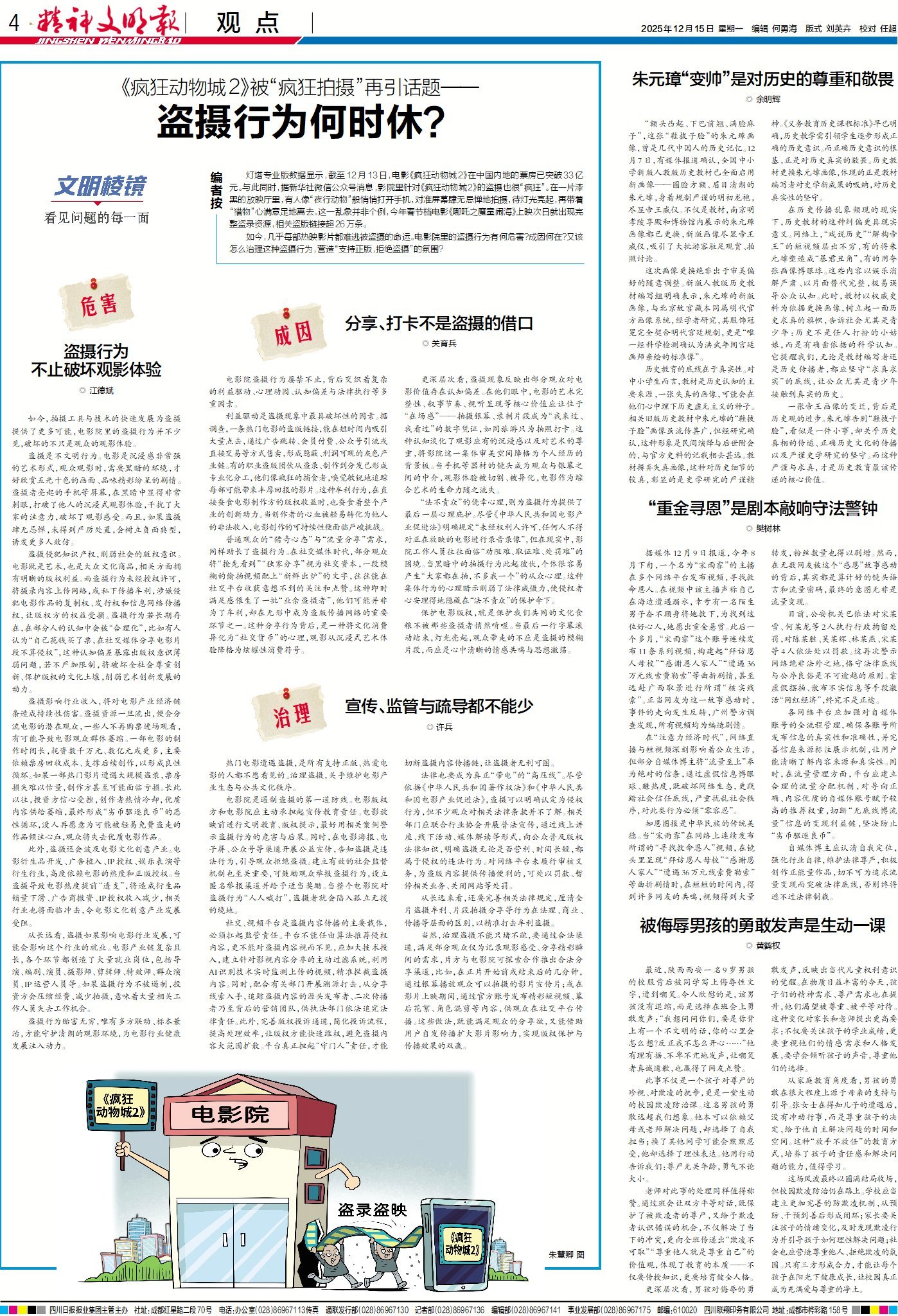 灯塔专业版数据显示,截至12月13日,电影《疯狂动物城2》在中国内地的票房已突破33亿元。与此同时,据新华社微信公众号消息,影院里针对《疯狂动物城2》的盗摄也很“疯狂”。在一片漆黑的放映厅里,有人像“夜行动物”般悄悄打开手机,对准屏幕肆无忌惮地拍摄,待灯光亮起,再带着“猎物”心满意足地离去。这一乱象并非个例,今年春节档电影《哪吒之魔童闹海》上映次日就出现完整盗录资源,相关盗版链接超26万条。