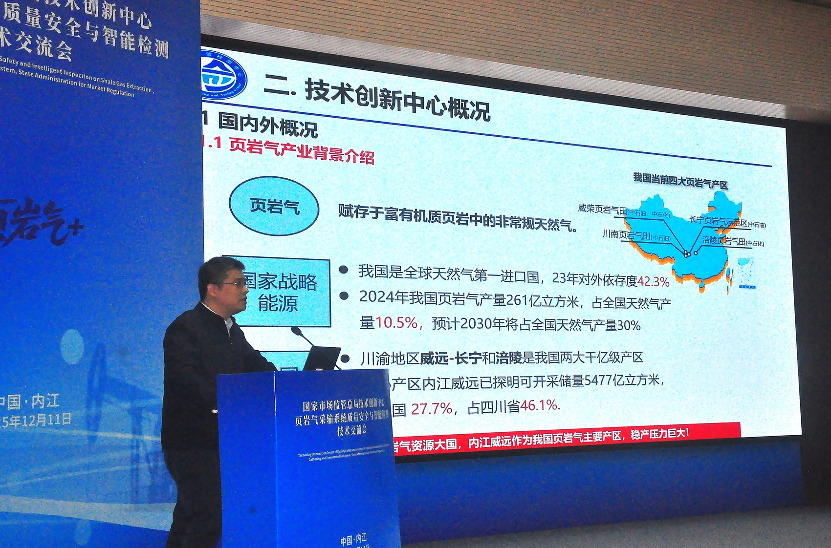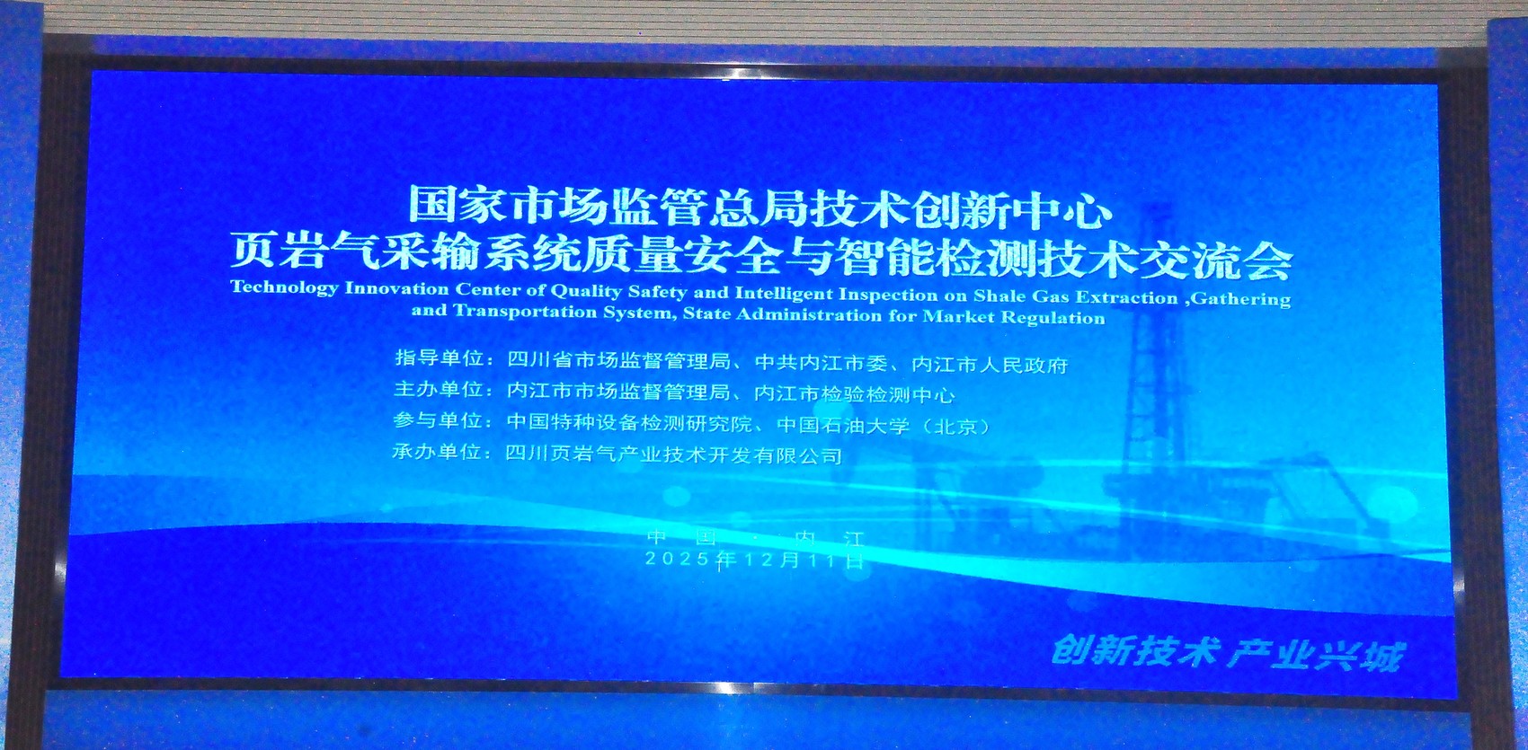 为解决内江市页岩气产业发展中存在的问题和难点,助力打造“页岩气+”千亿产业集群高质量发展及国家市场监管总局页岩气技术创新中心建设要求,12 月 11 日,由四川省市场监督管理局、内江市委、内江市人民政府指导,内江市市场监督管理局、内江市检验检测中心主办,中国特种设备检测研究院、中国石油大学(北京)参与,四川页岩气产业技术有限公司承办的以“质量安全与智能检测赋能页岩气发展”为主题的国家市场监管总局页岩气技术创新中心“页岩气采输系统质量安全与智能检测技术”技术交流会在内江国际酒店举行。