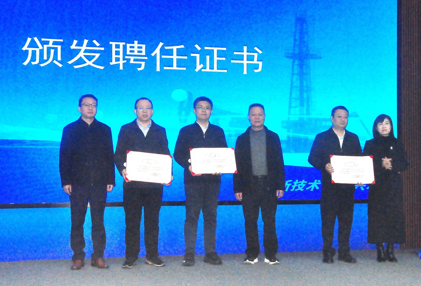 会间,周春宣读了创新中心管理人员聘任文件并与朱佑富、钟龄欧一同上台向创新中心技术委员会主任委员张来斌院士、页岩气技术创新中心主任宋明、管理委员会主任龙腾颁发聘书。