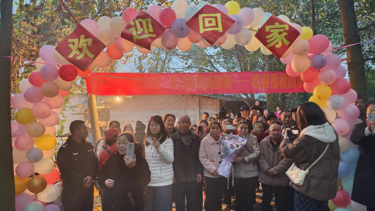 2025年12月11日早上9时,雅安市名山区百丈镇,寒冷的空气中飘荡着激动与喜悦。锅碗瓢盆的轻撞、乡亲们压低的笑语和一阵阵吹胀气球的“噗噗”声……汇成了一条由爱与思念凝成的归家路。这条通往家的路,被亲人的思念、乡亲的热情、艳丽的鞭炮和五彩斑斓的气球围绕,只为迎接一位离散了21年的游子:禧儿。