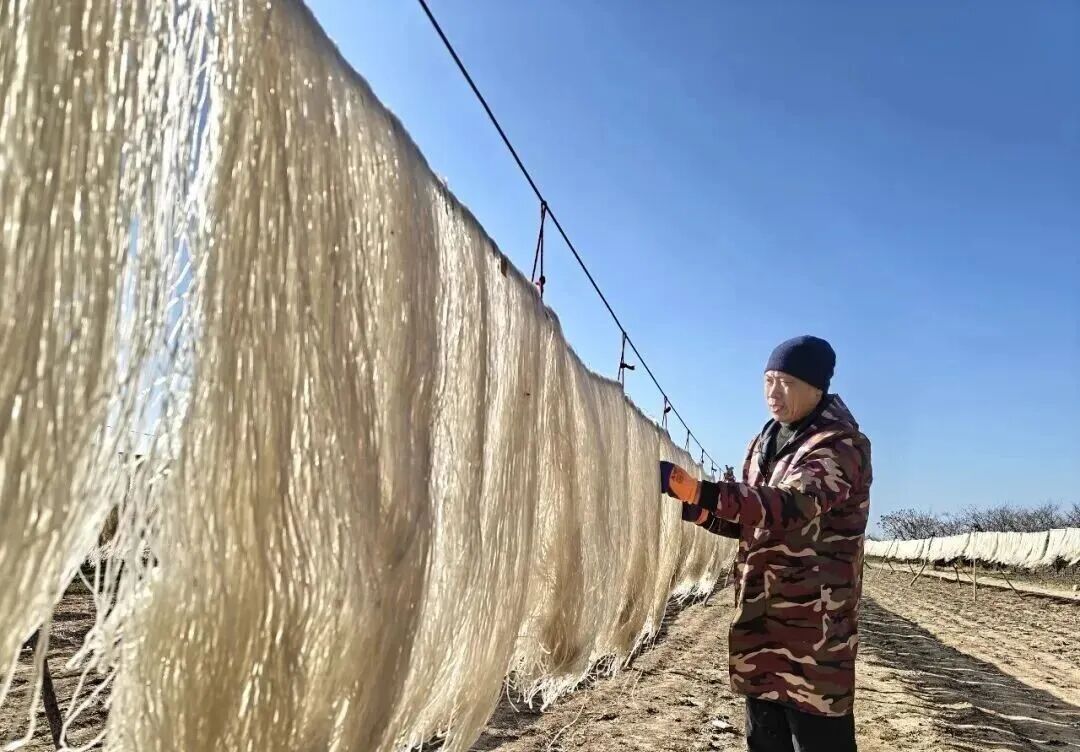 “现在虽然有些步骤可以用机器代替,但关键环节还得靠手工,这样做出的粉条才筋道、爽滑,口感特别好。”相武自豪地说。冷却后的粉条还需冷冻两天两夜,若天气晴好有风,晾晒五六个小时便可干燥。